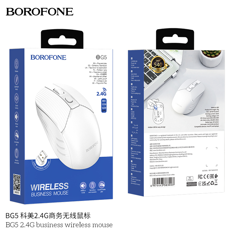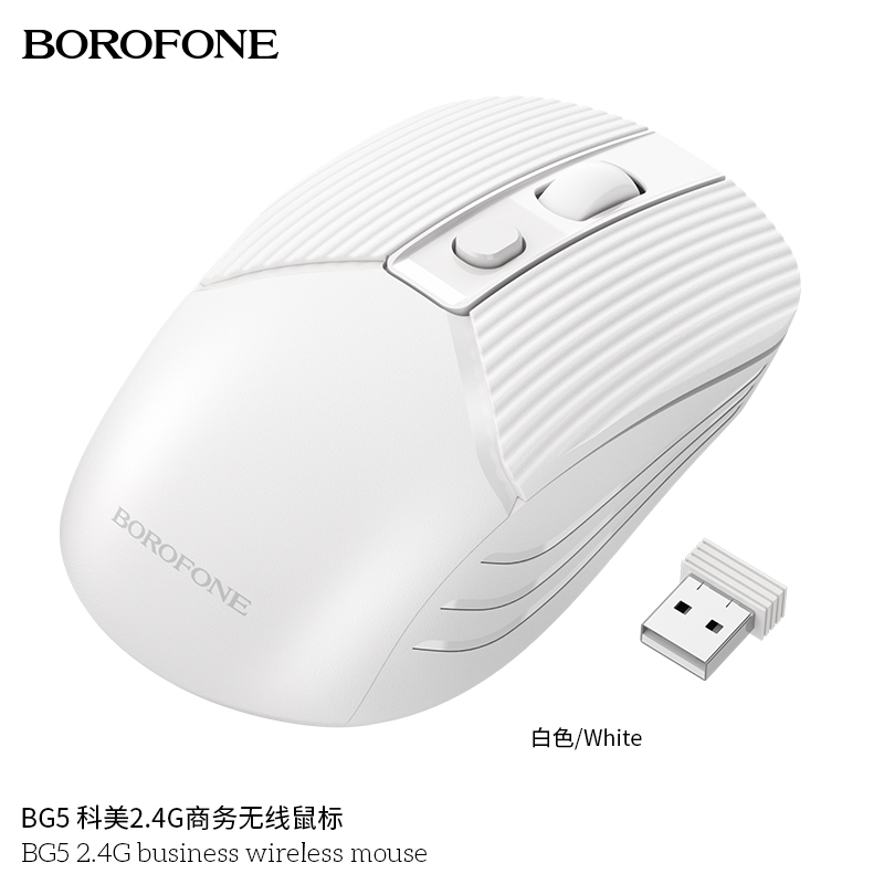 Мышь беспроводная Borofone BG5, 1600dpi, 4 кнопки, USB, цвет: белый (6974443383003)