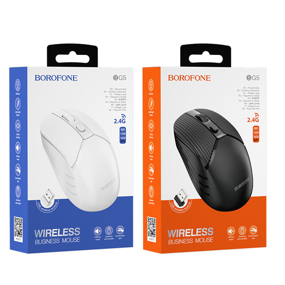 Мышь беспроводная Borofone, BG5, 1600dpi, 4 кнопки, USB, цвет: чёрный (6974443382990)