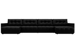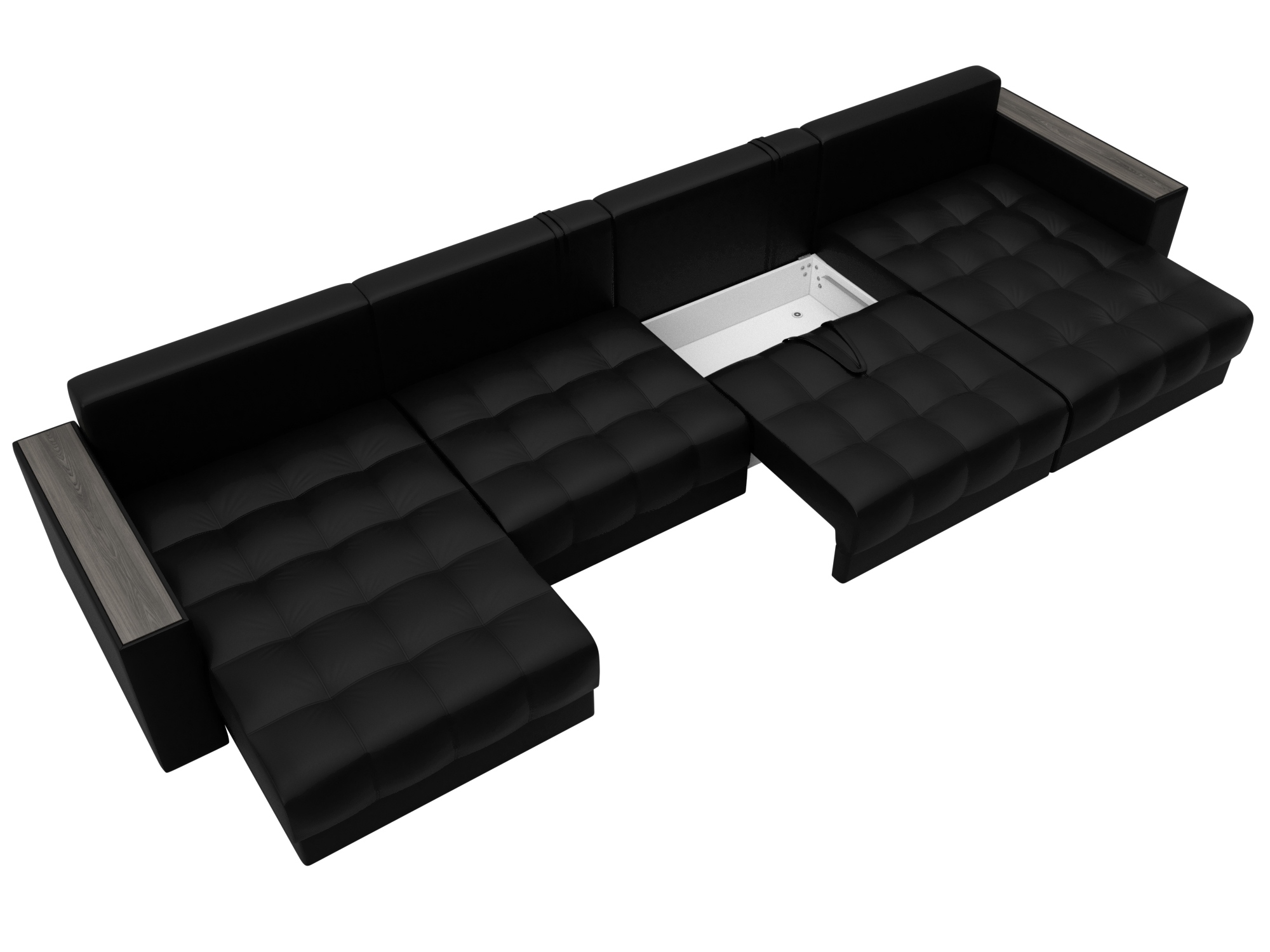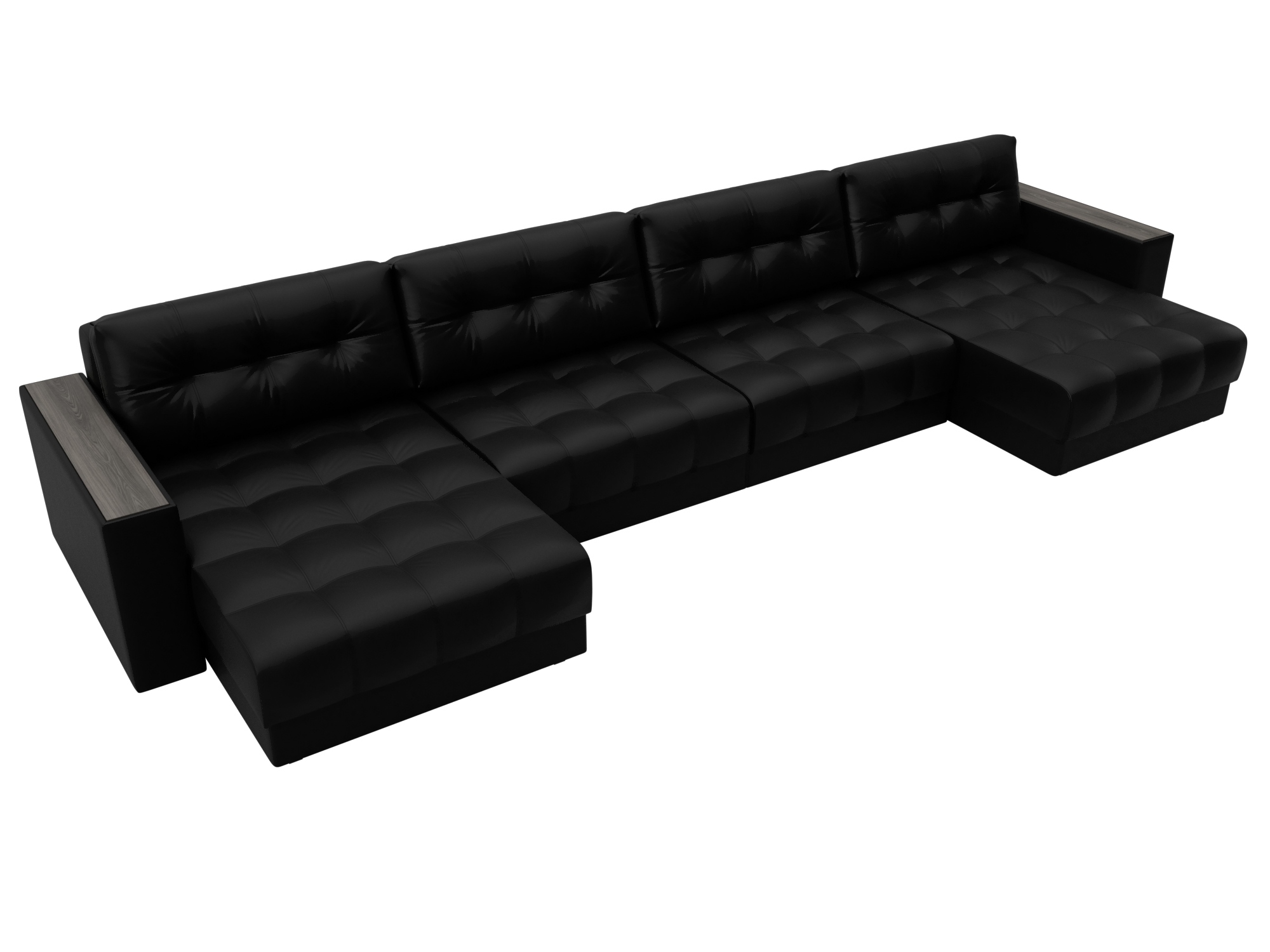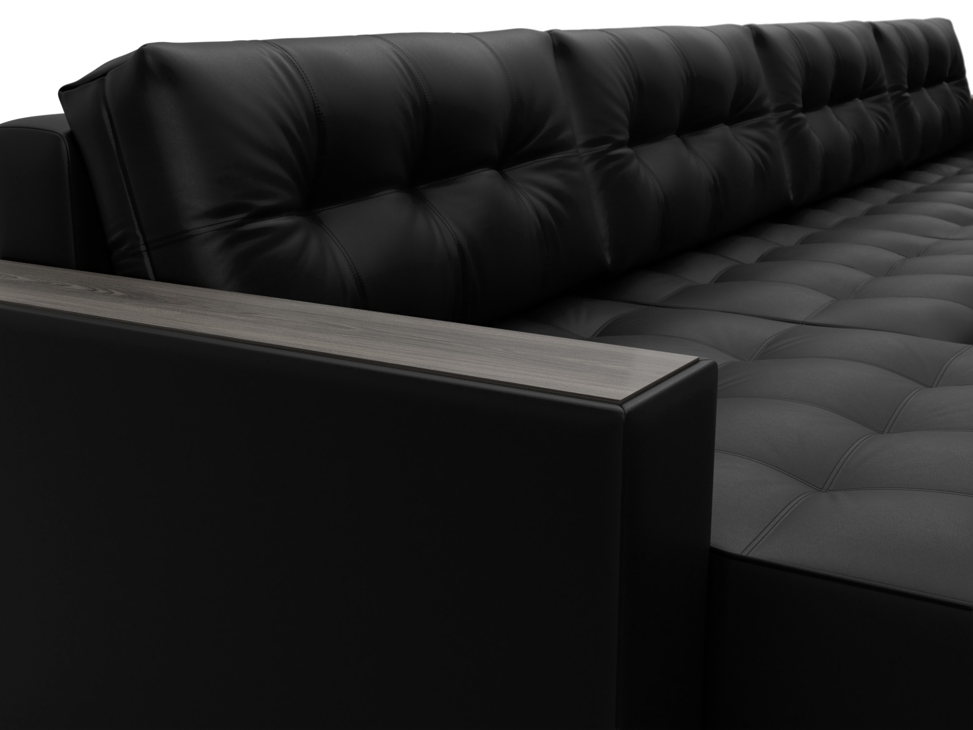 Диван П-образный Лига Диванов Лига-049 НПБ Лонг с декором (экокожа Grifon 18 черный)