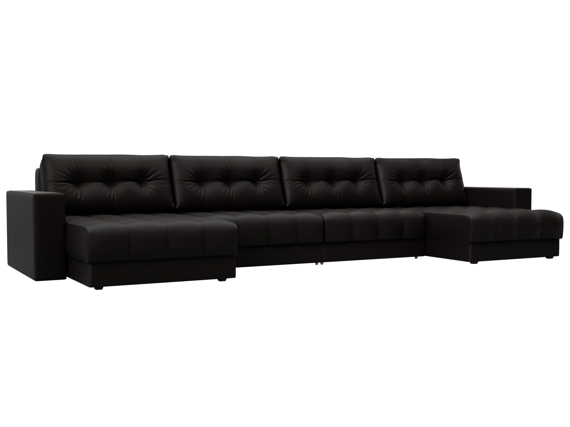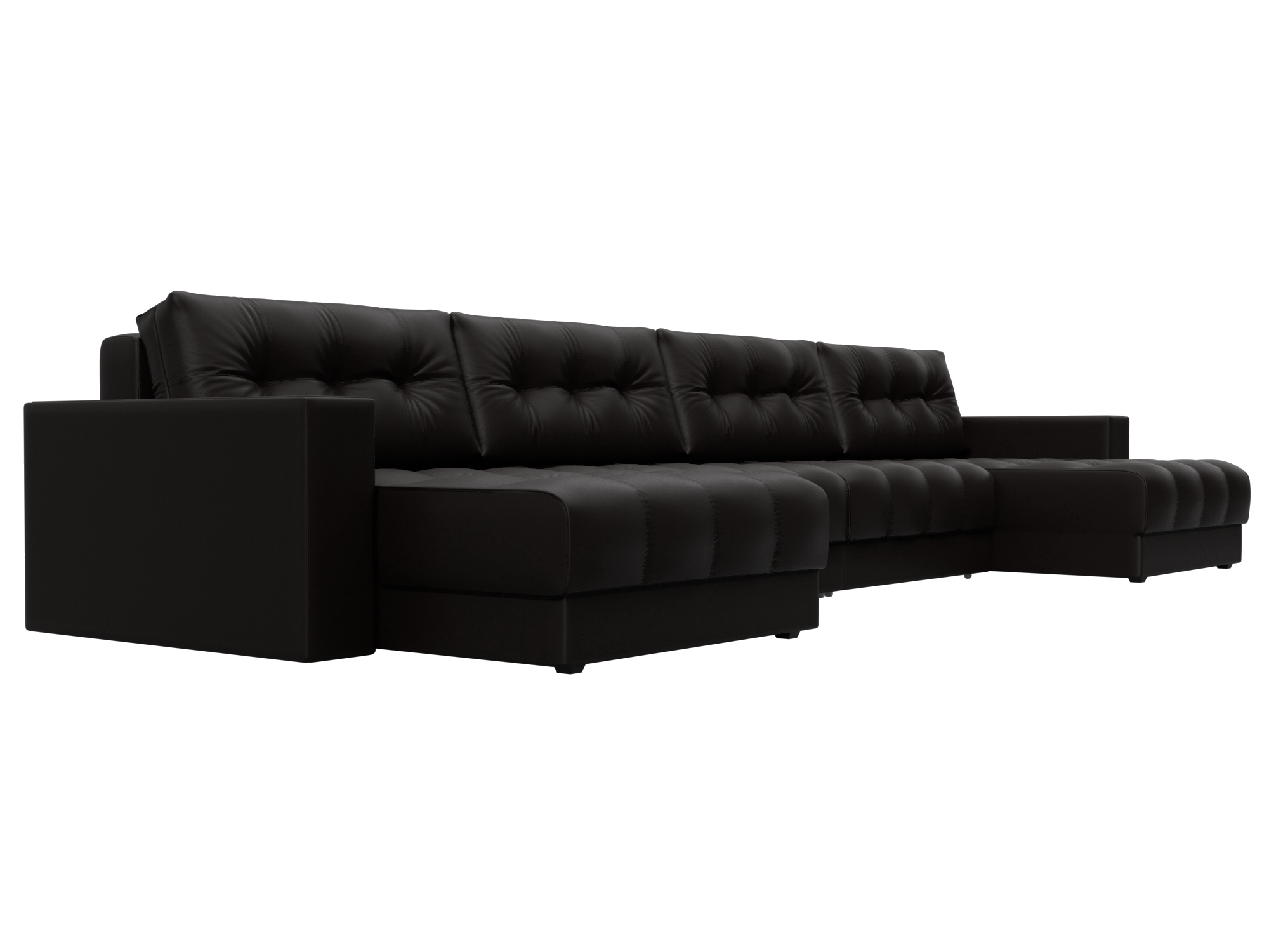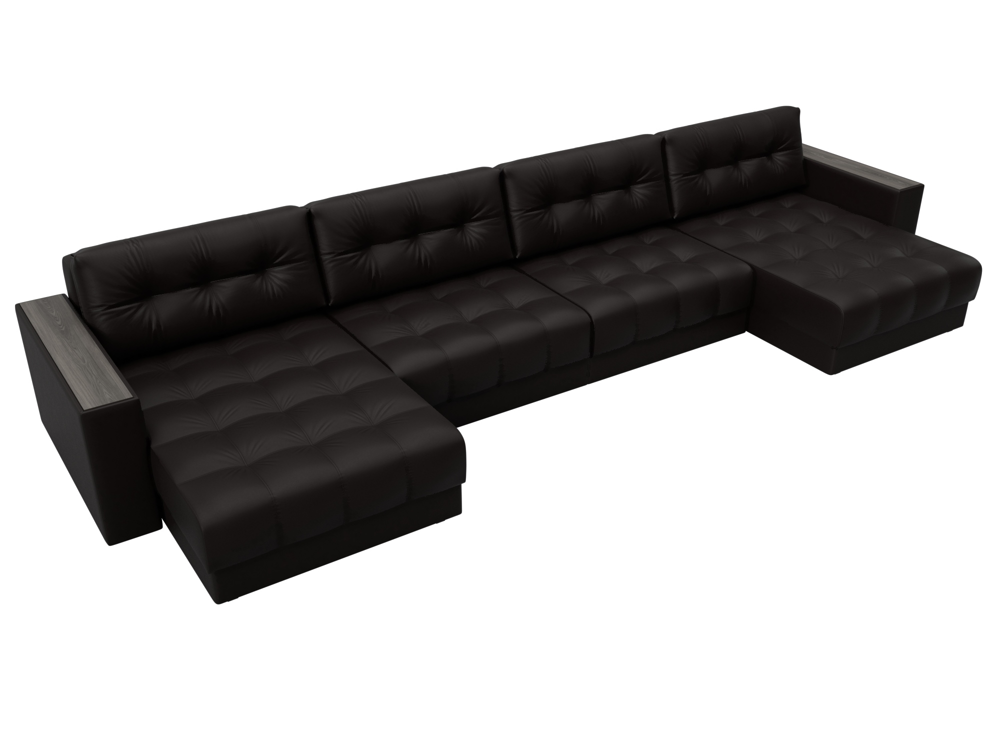 Диван П-образный Лига Диванов Лига-049 НПБ Лонг с декором (экокожа Grifon 12 коричневый)