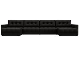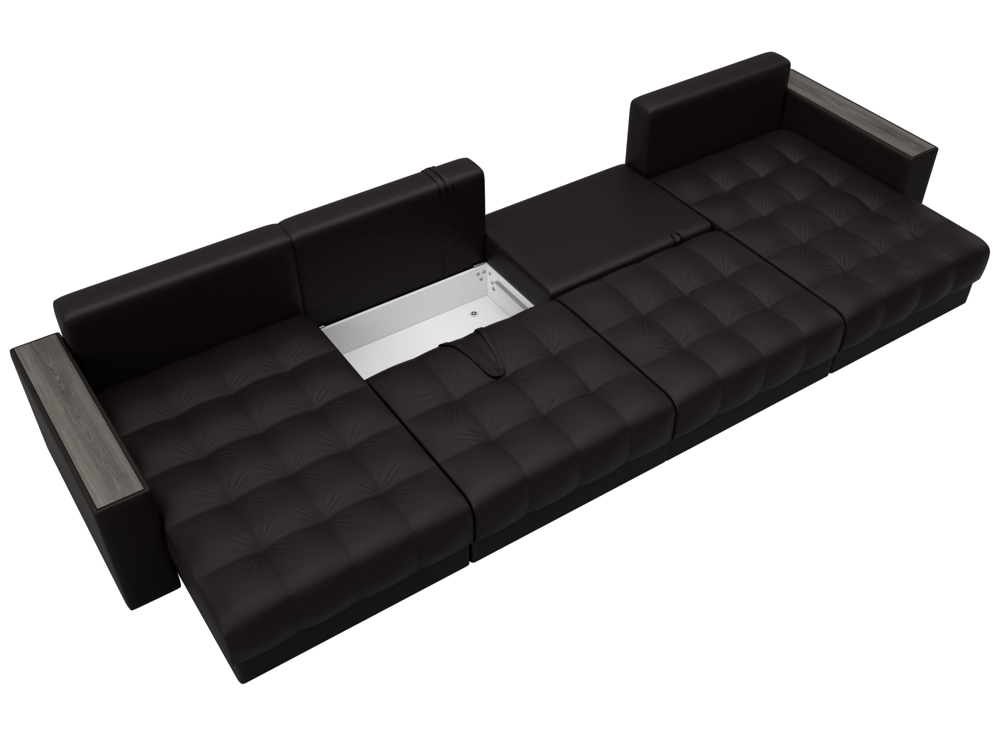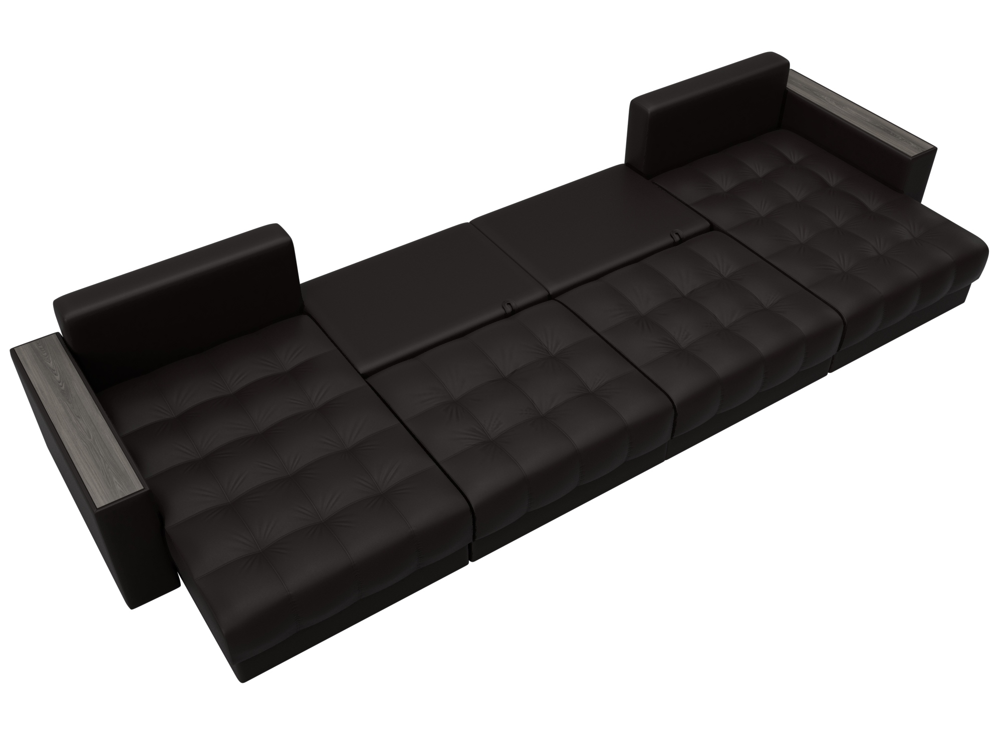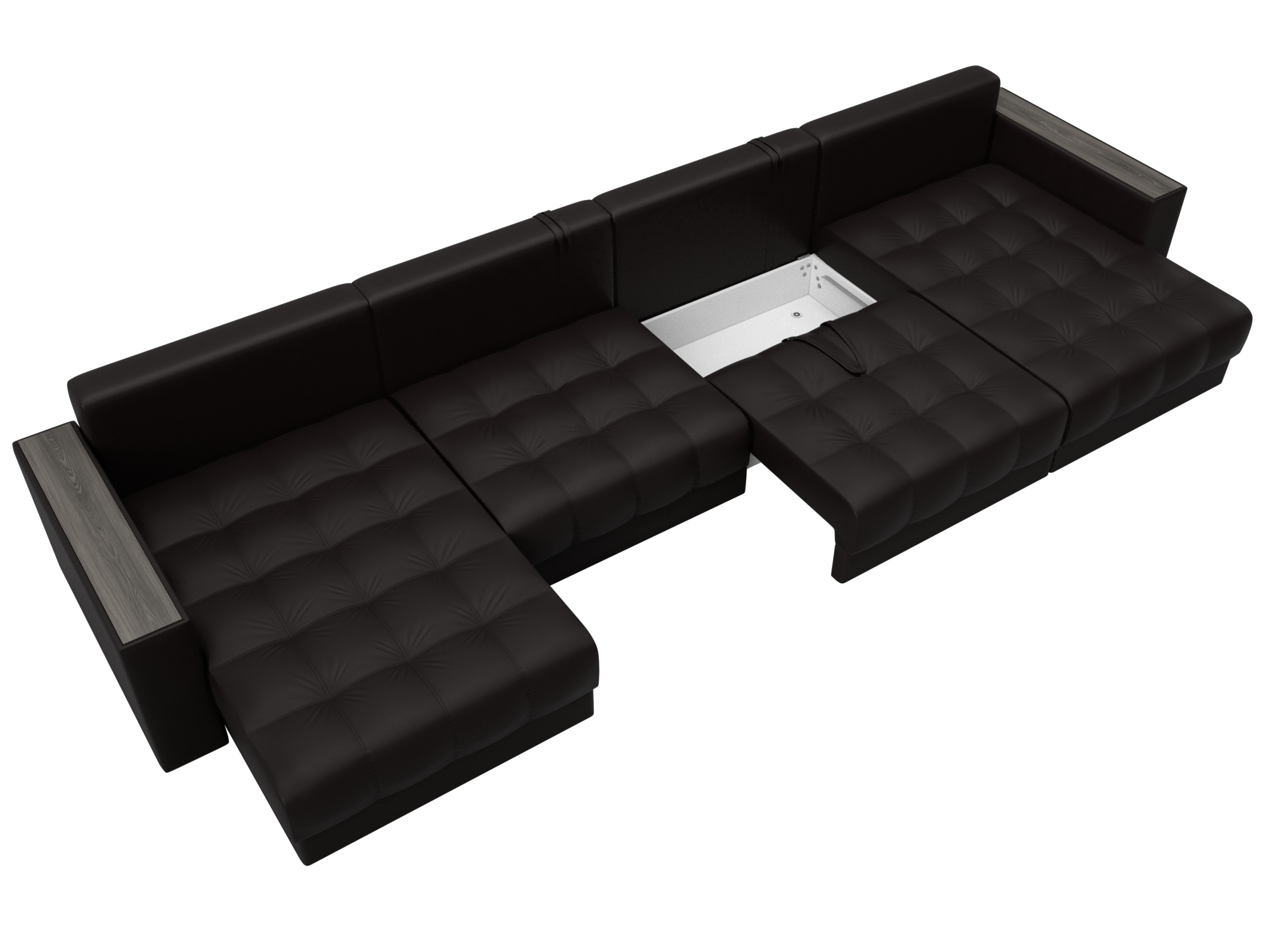 Диван П-образный Лига Диванов Лига-049 НПБ Лонг с декором (экокожа Grifon 12 коричневый)