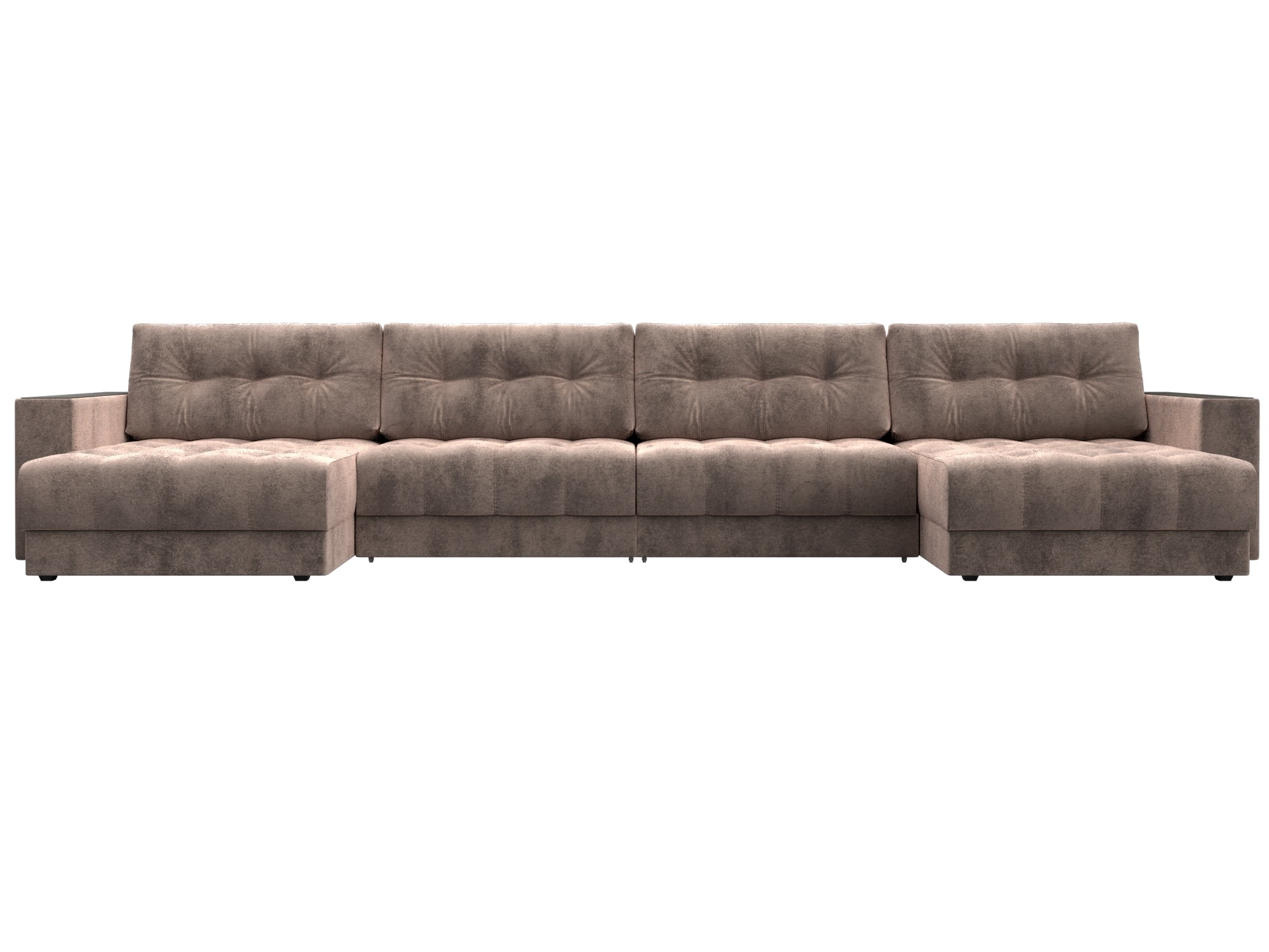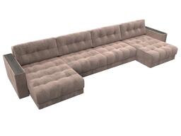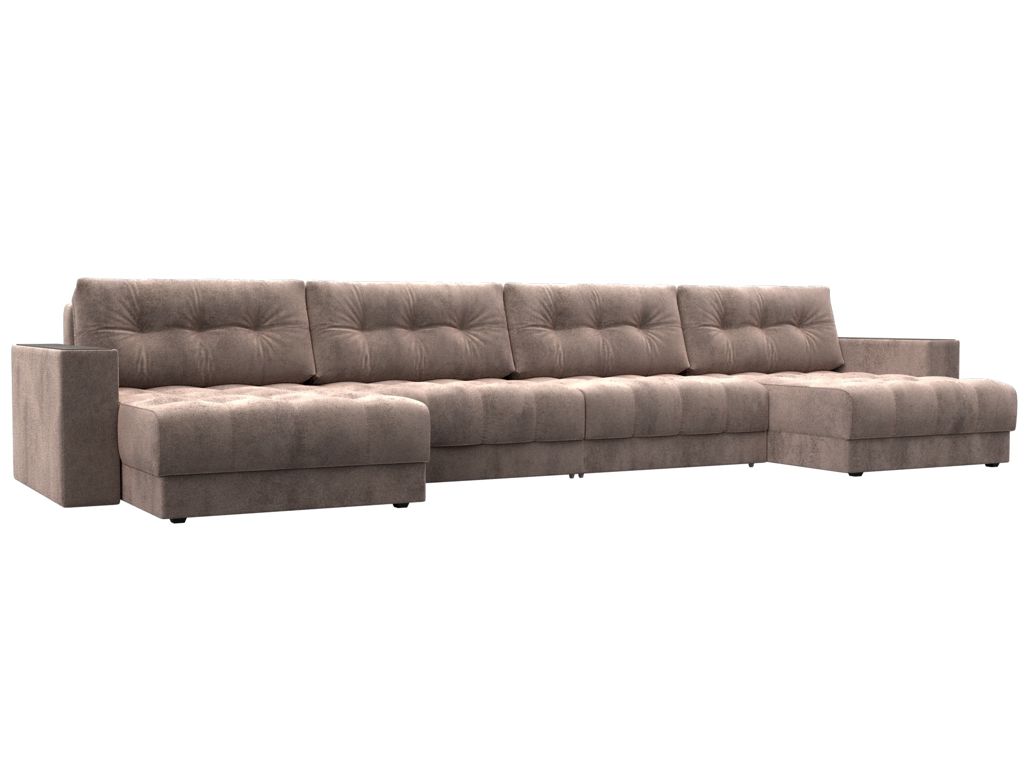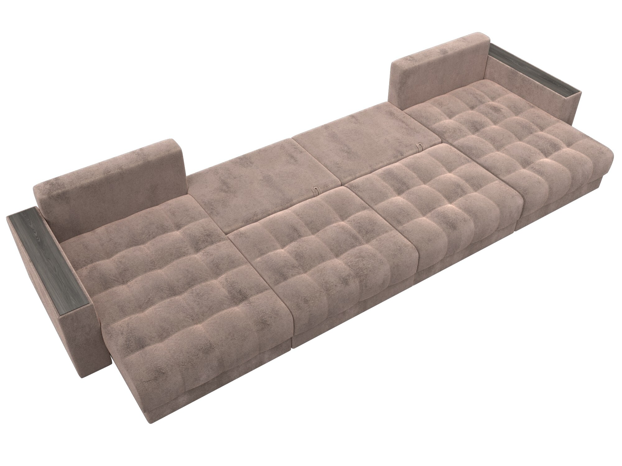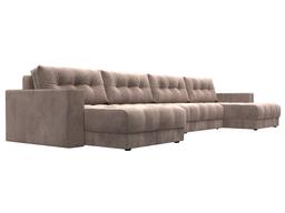 Диван П-образный Лига Диванов Лига-049 НПБ Лонг с декором (велюр Tower 05 бежевый)