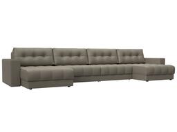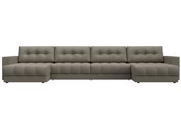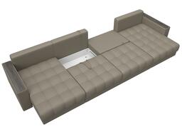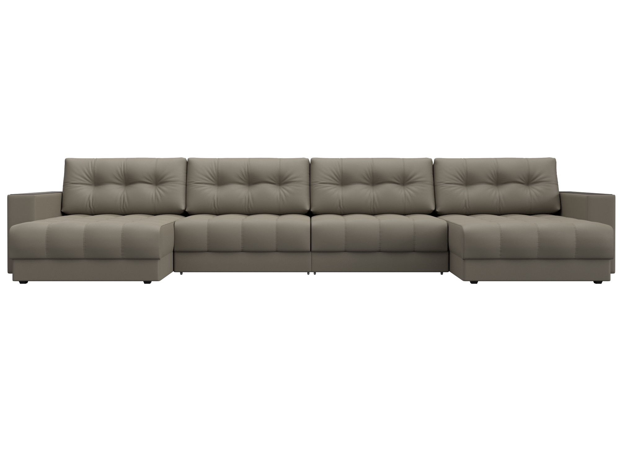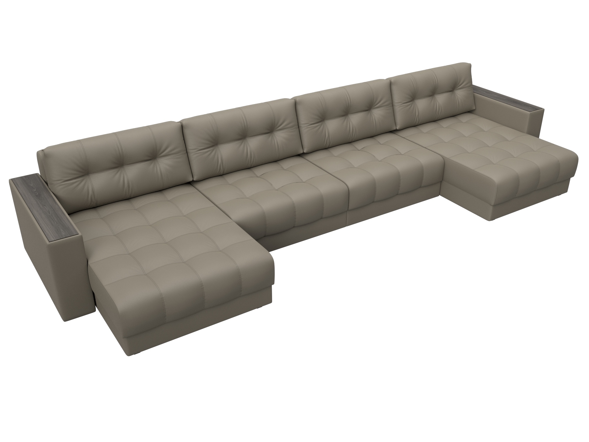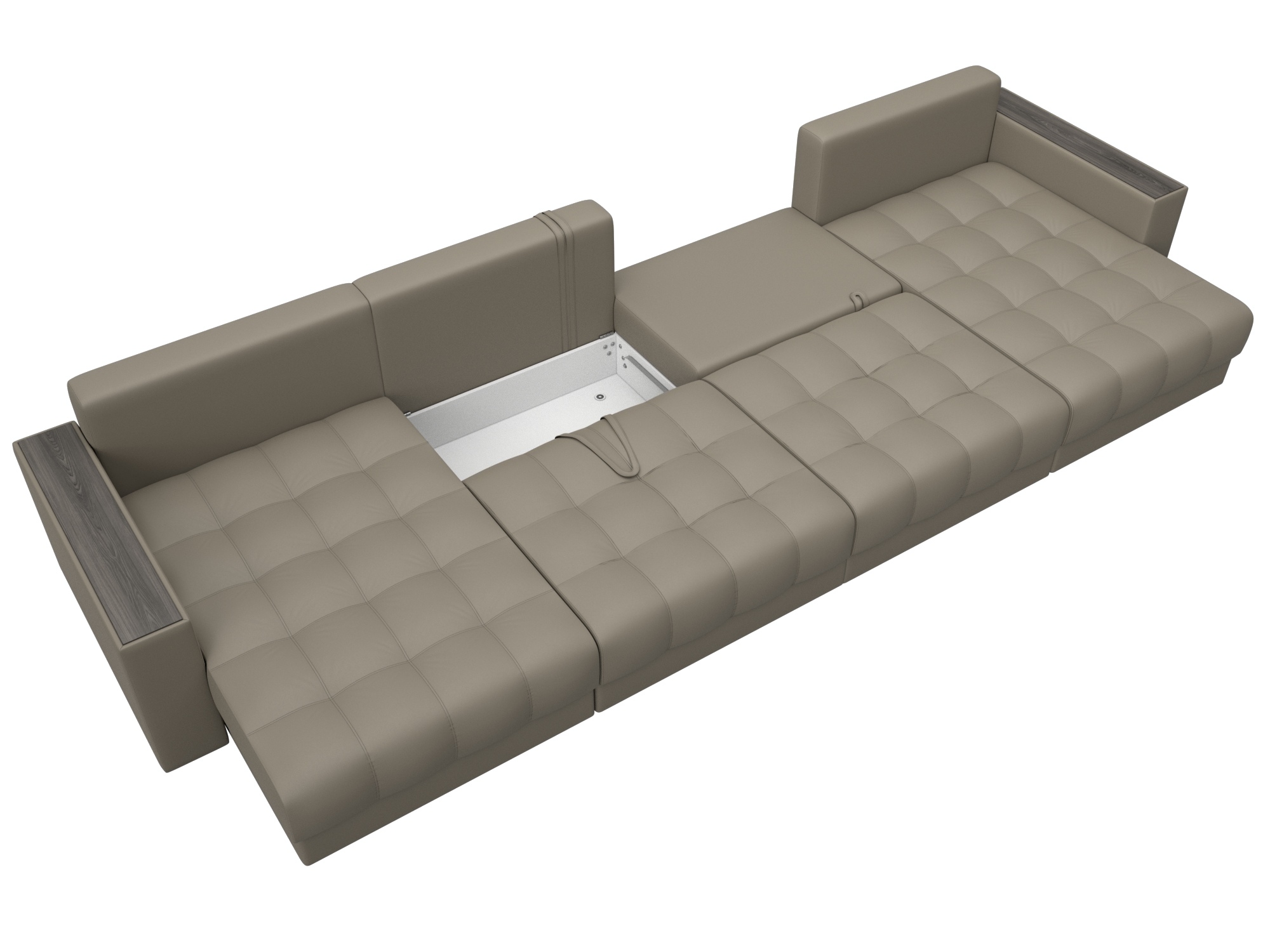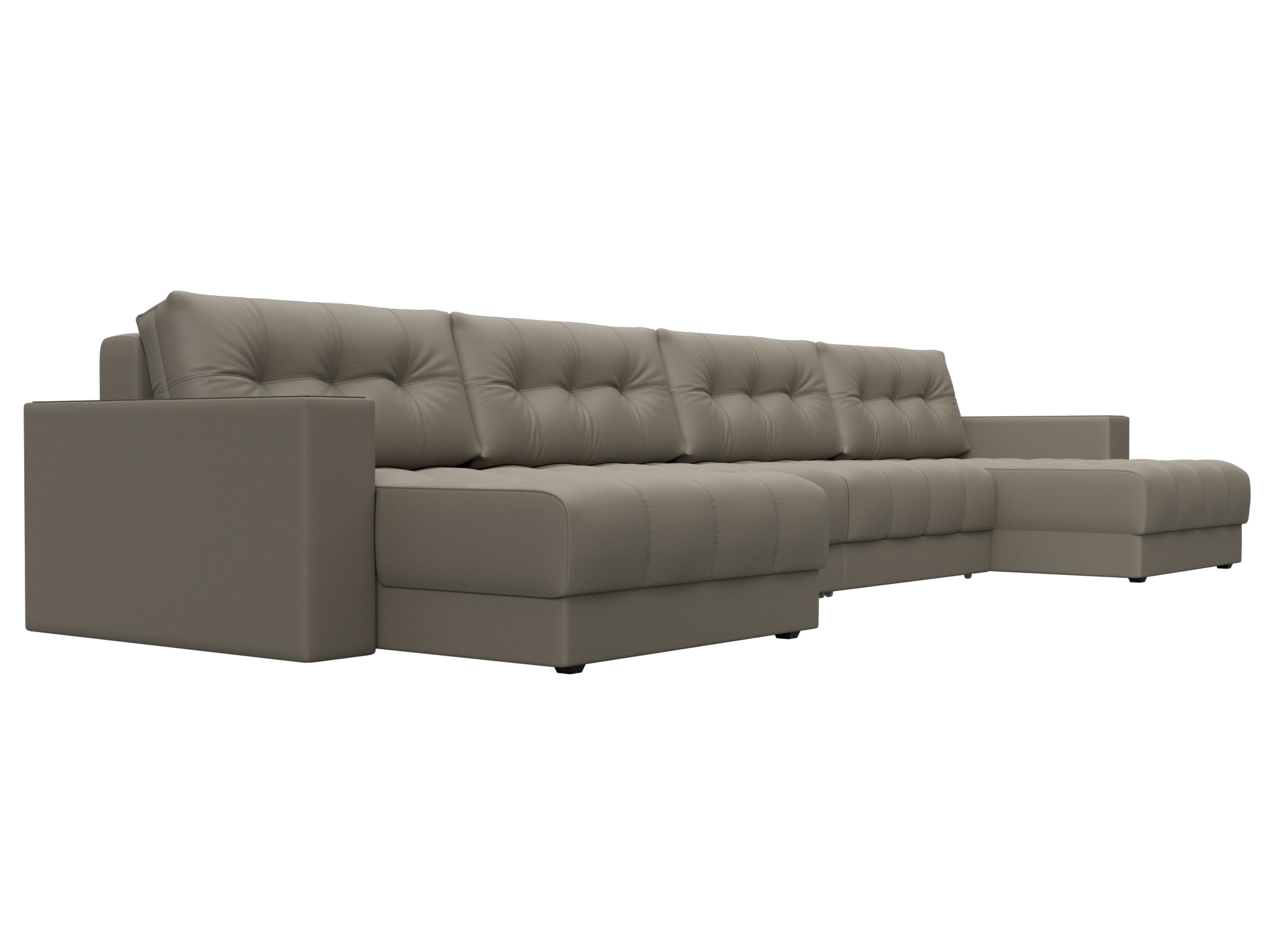 Диван П-образный Лига Диванов Лига-049 НПБ Лонг с декором (экокожа Grifon 04 бежевый)