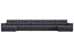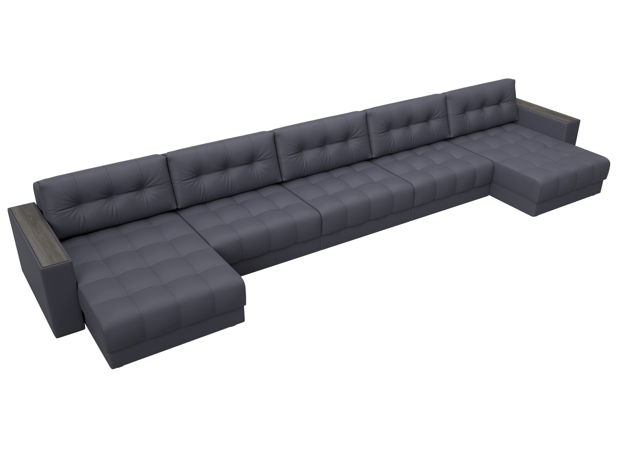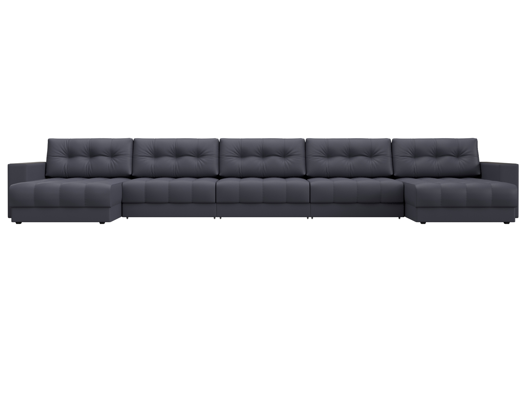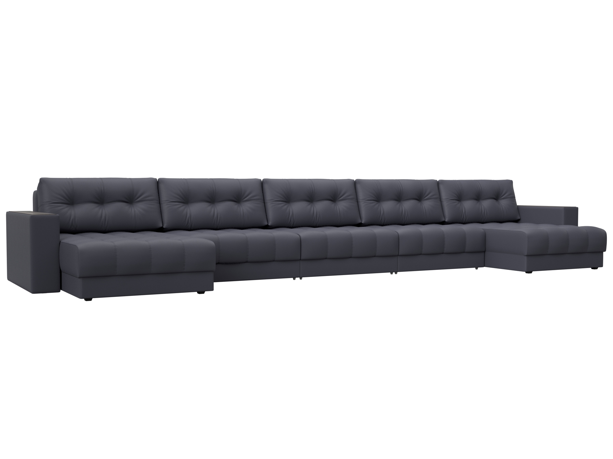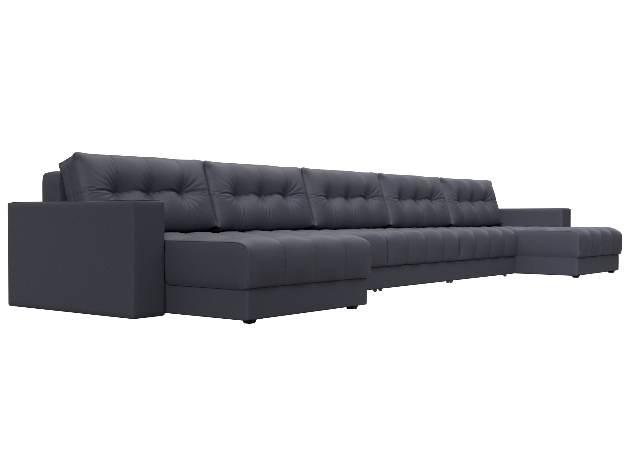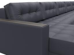 Диван П-образный Лига Диванов Лига-049 НПБ МегаЛонг с декором (экокожа Grifon 15 серый)