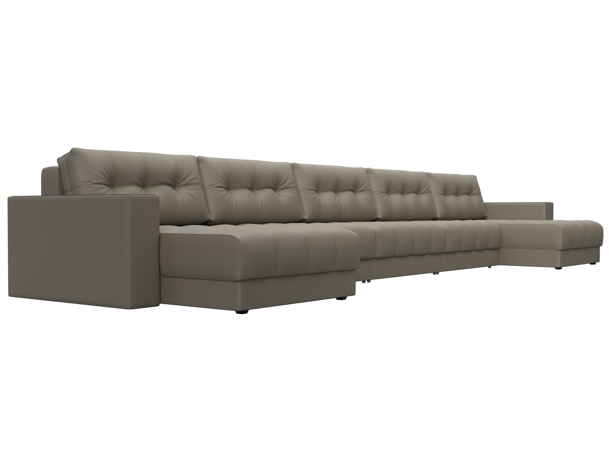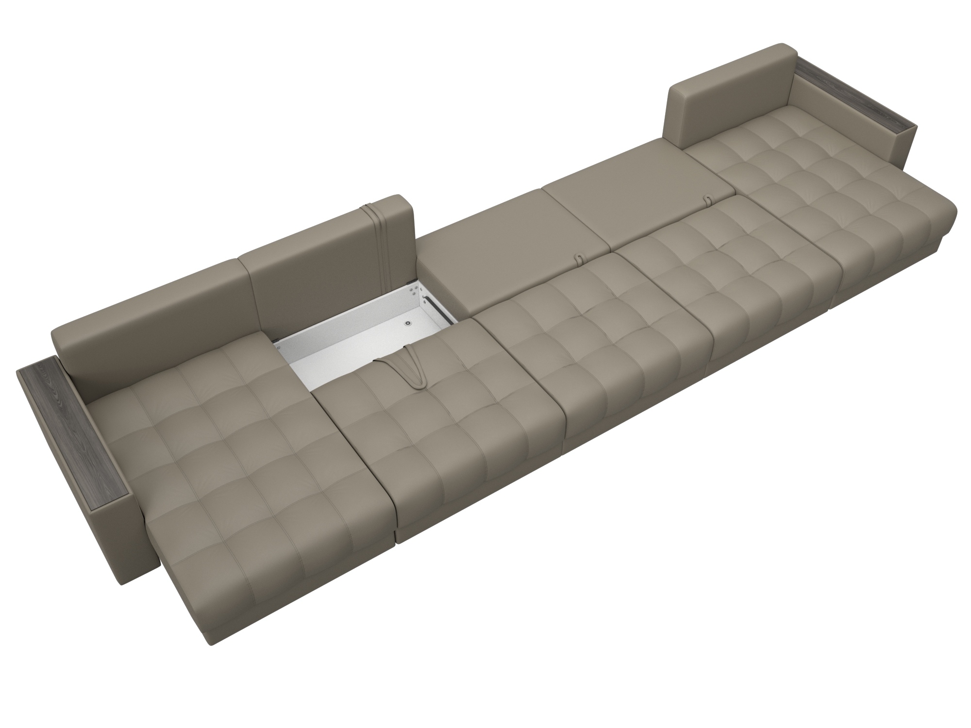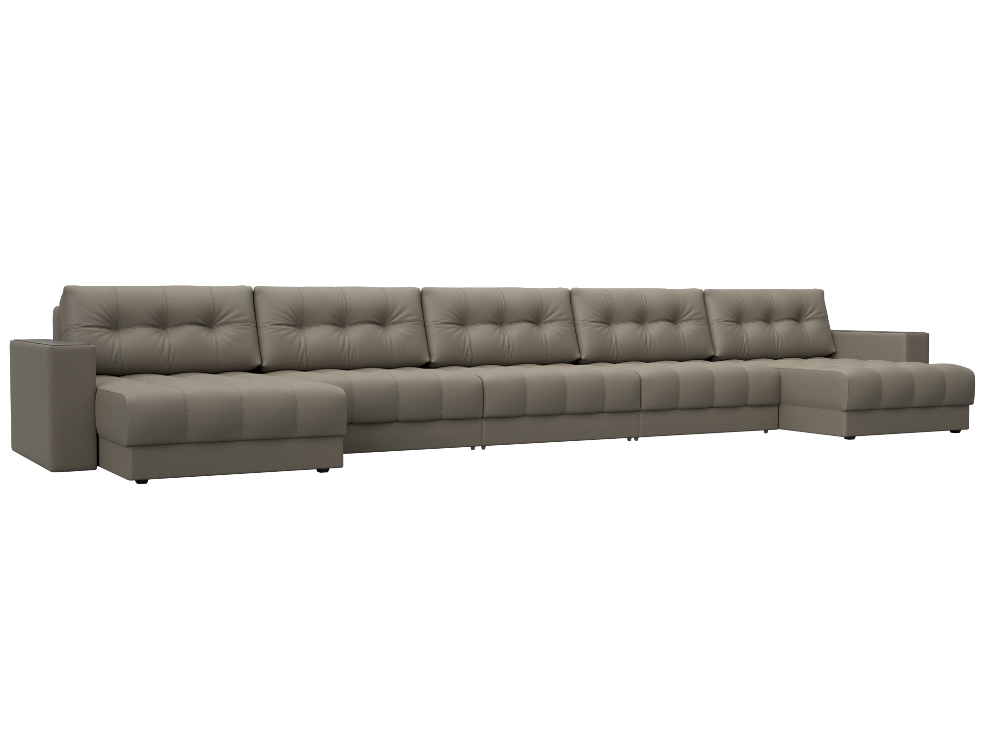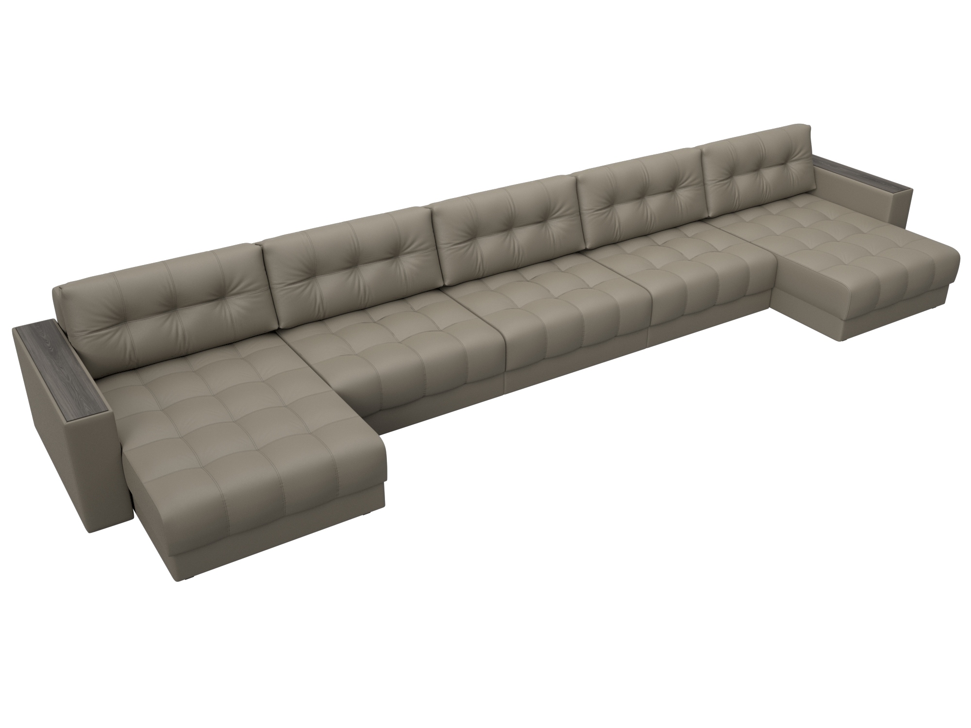 Диван П-образный Лига Диванов Лига-049 НПБ МегаЛонг с декором (экокожа Grifon 04 бежевый)