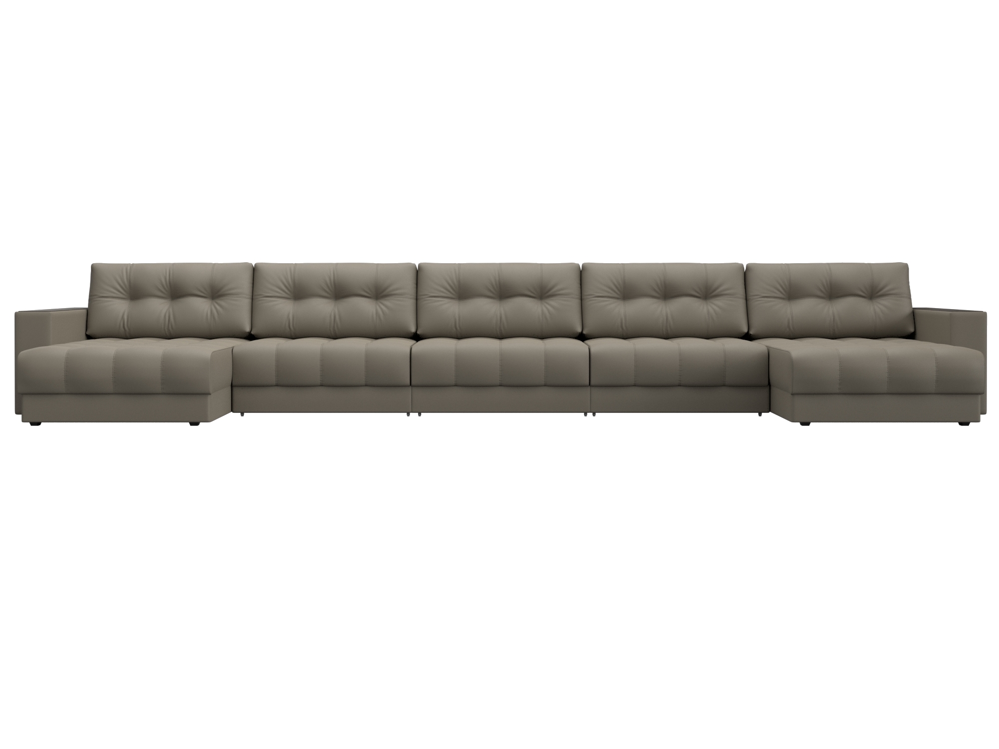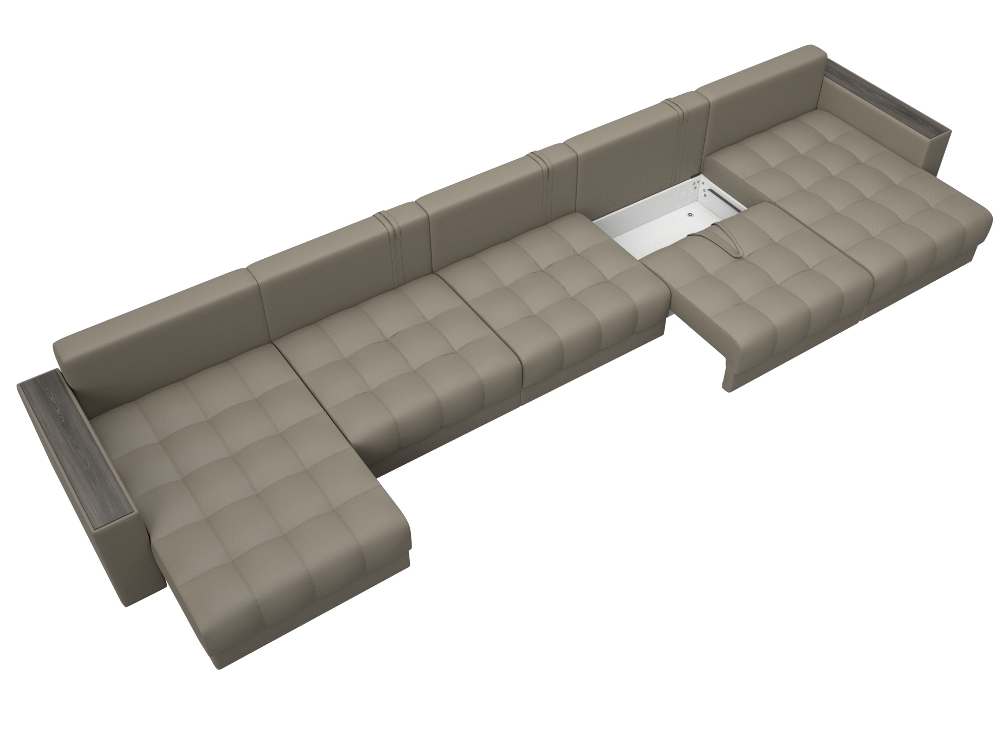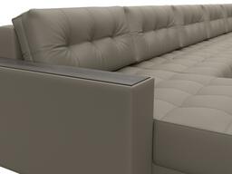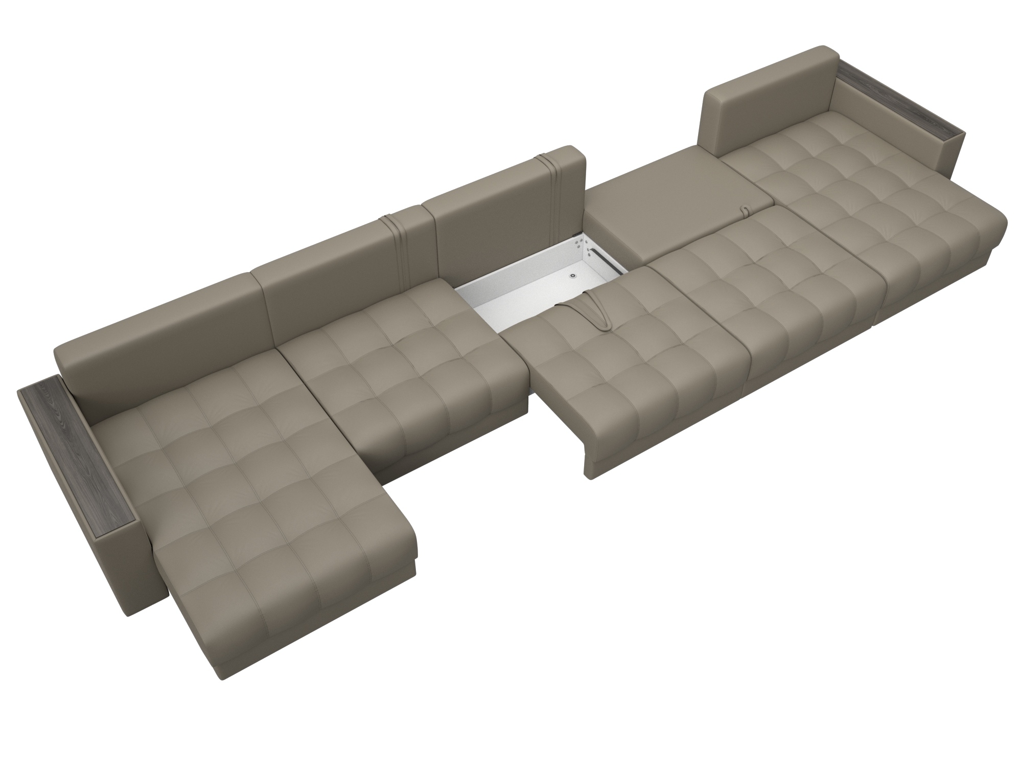Диван П-образный Лига Диванов Лига-049 НПБ МегаЛонг с декором (экокожа Grifon 04 бежевый)