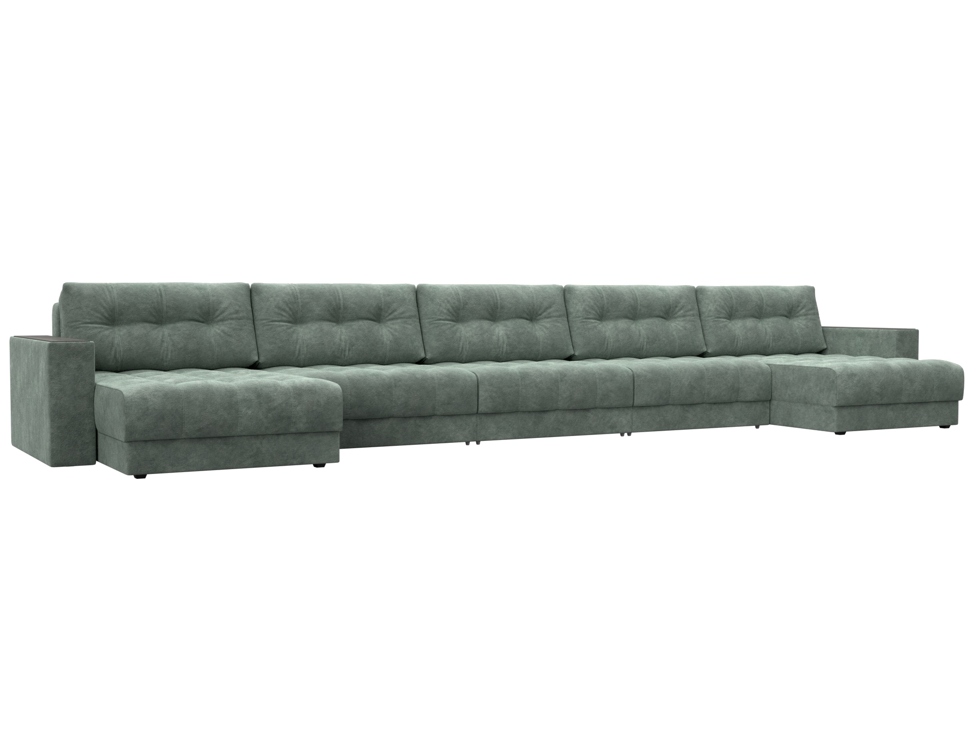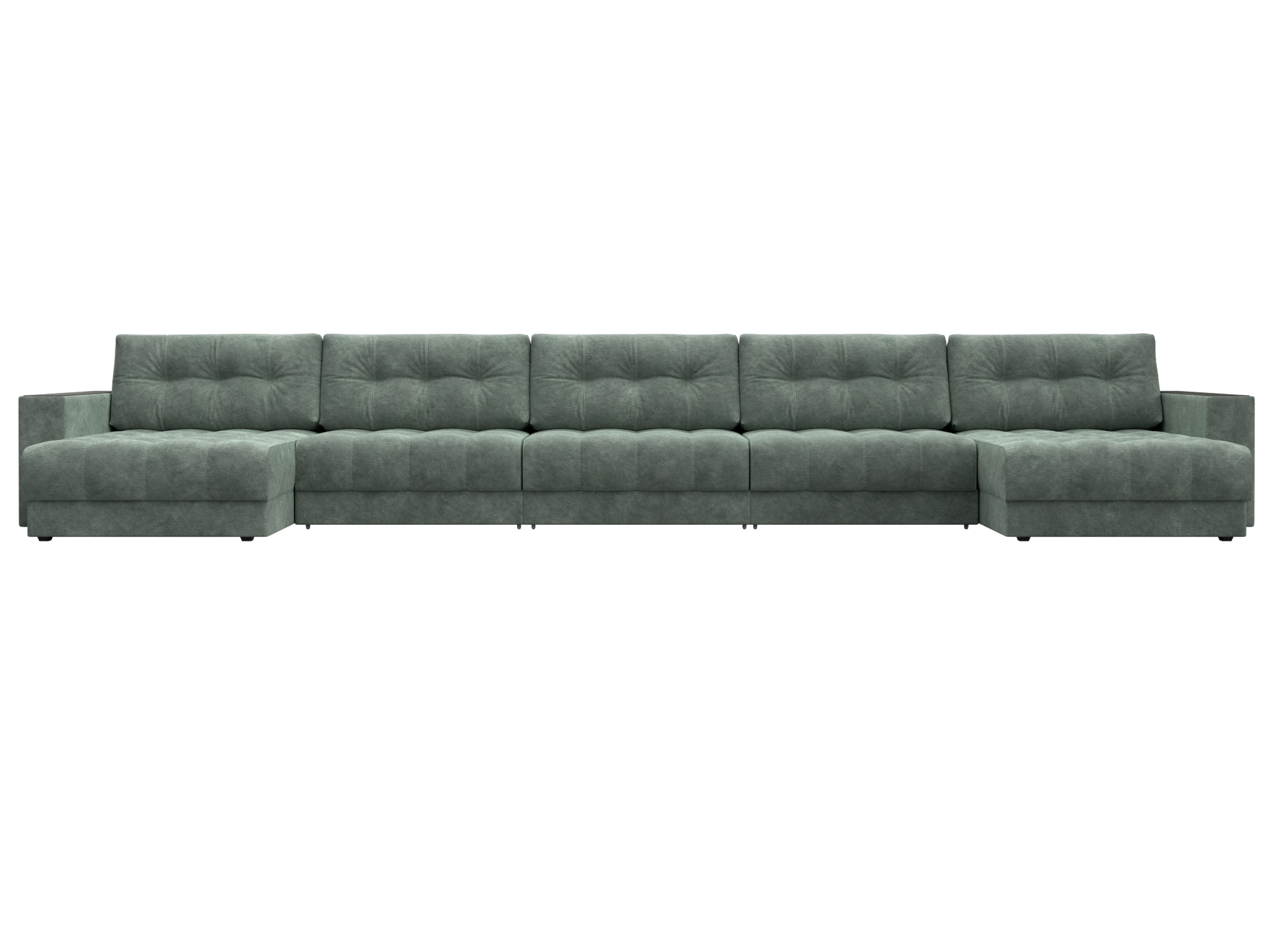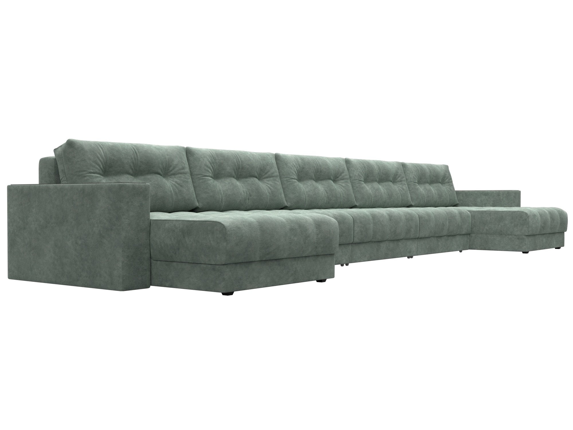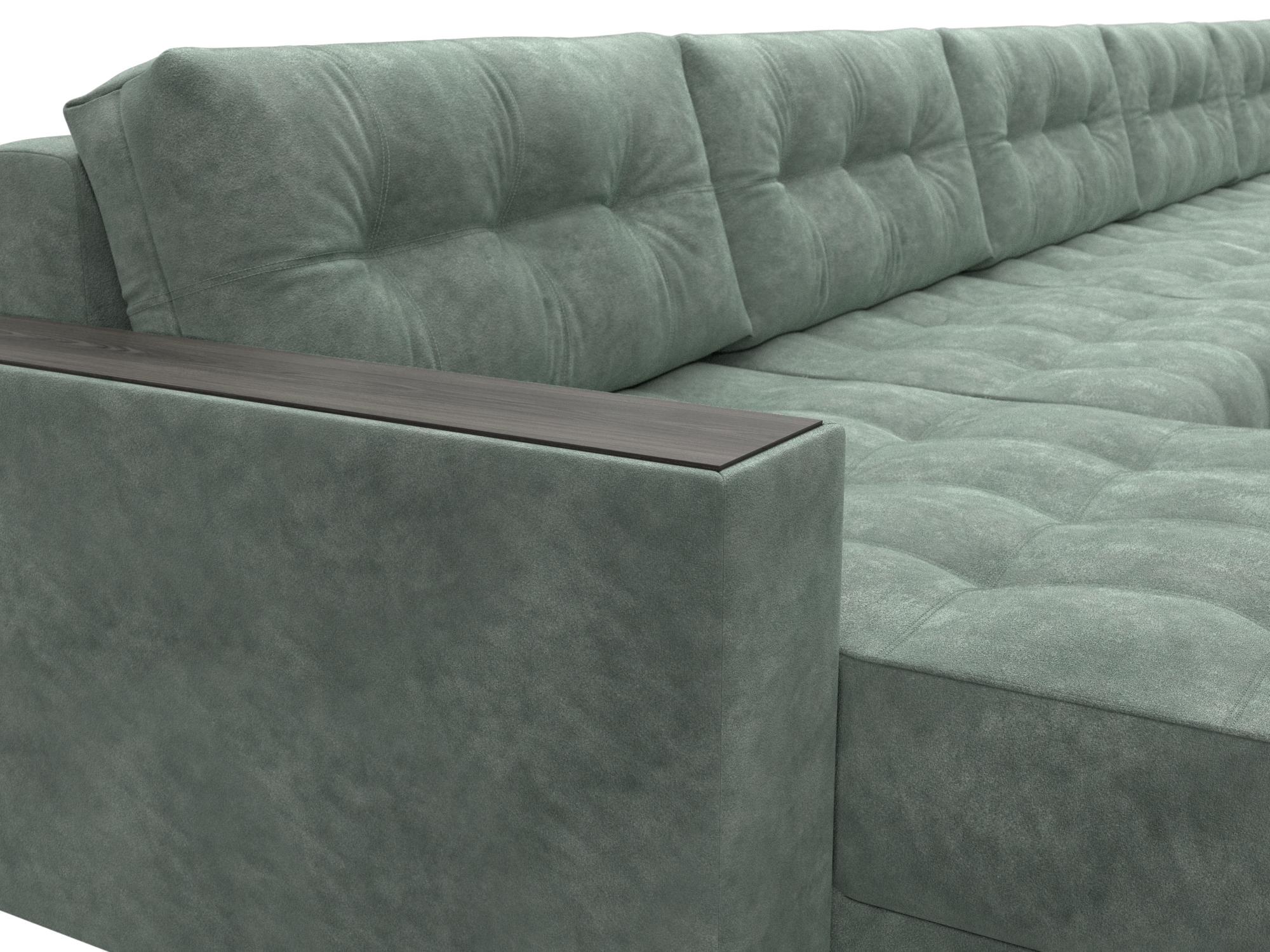 Диван П-образный Лига Диванов Лига-049 НПБ МегаЛонг с декором (велюр Brut 08 зеленый)