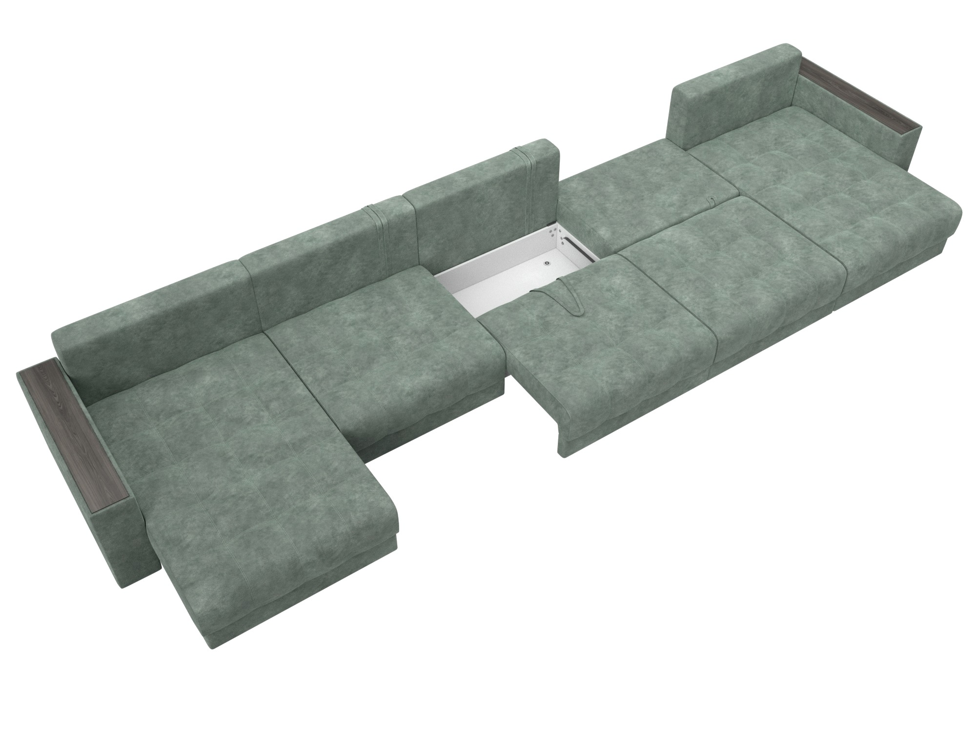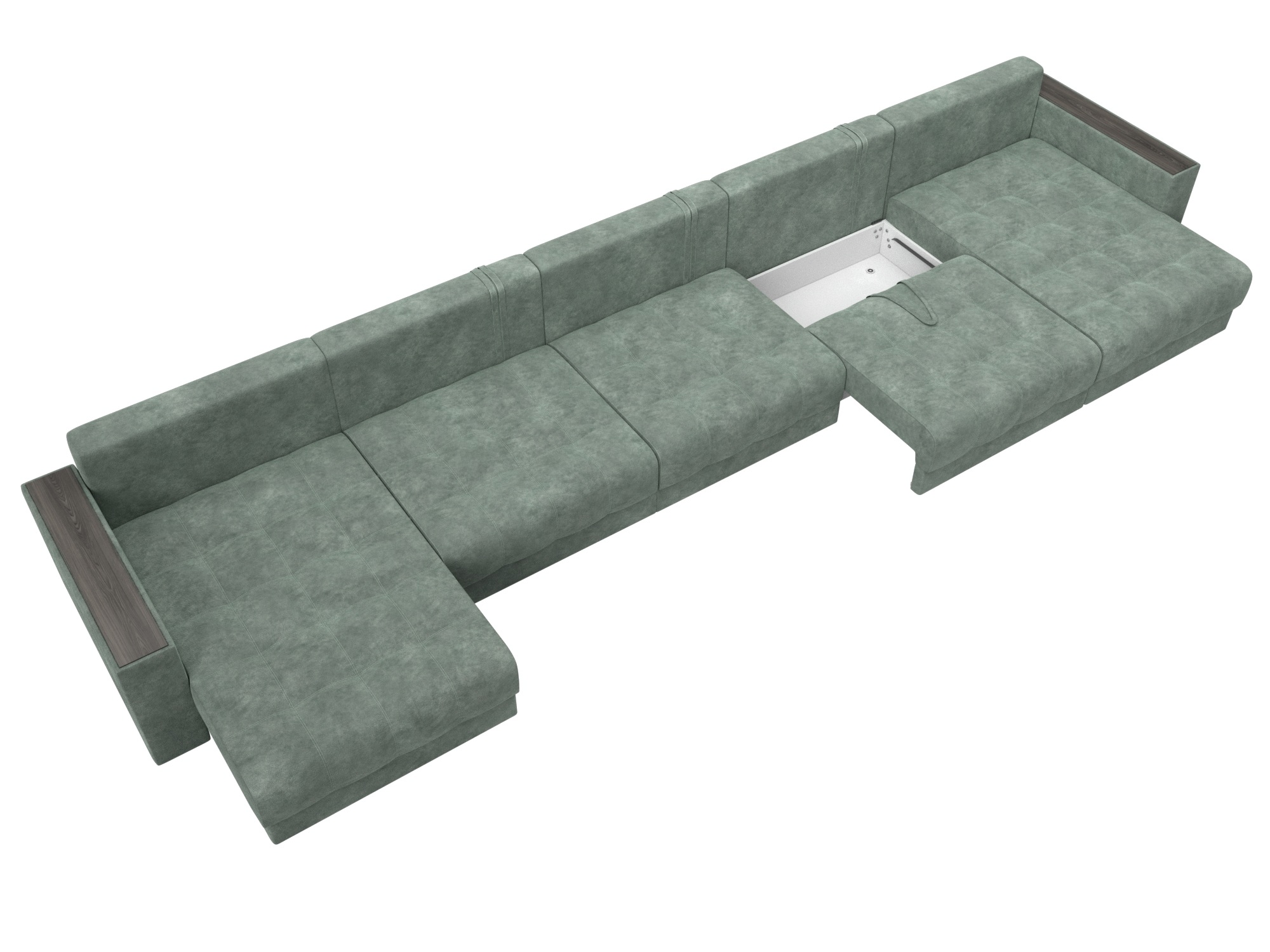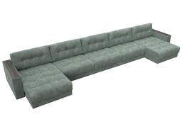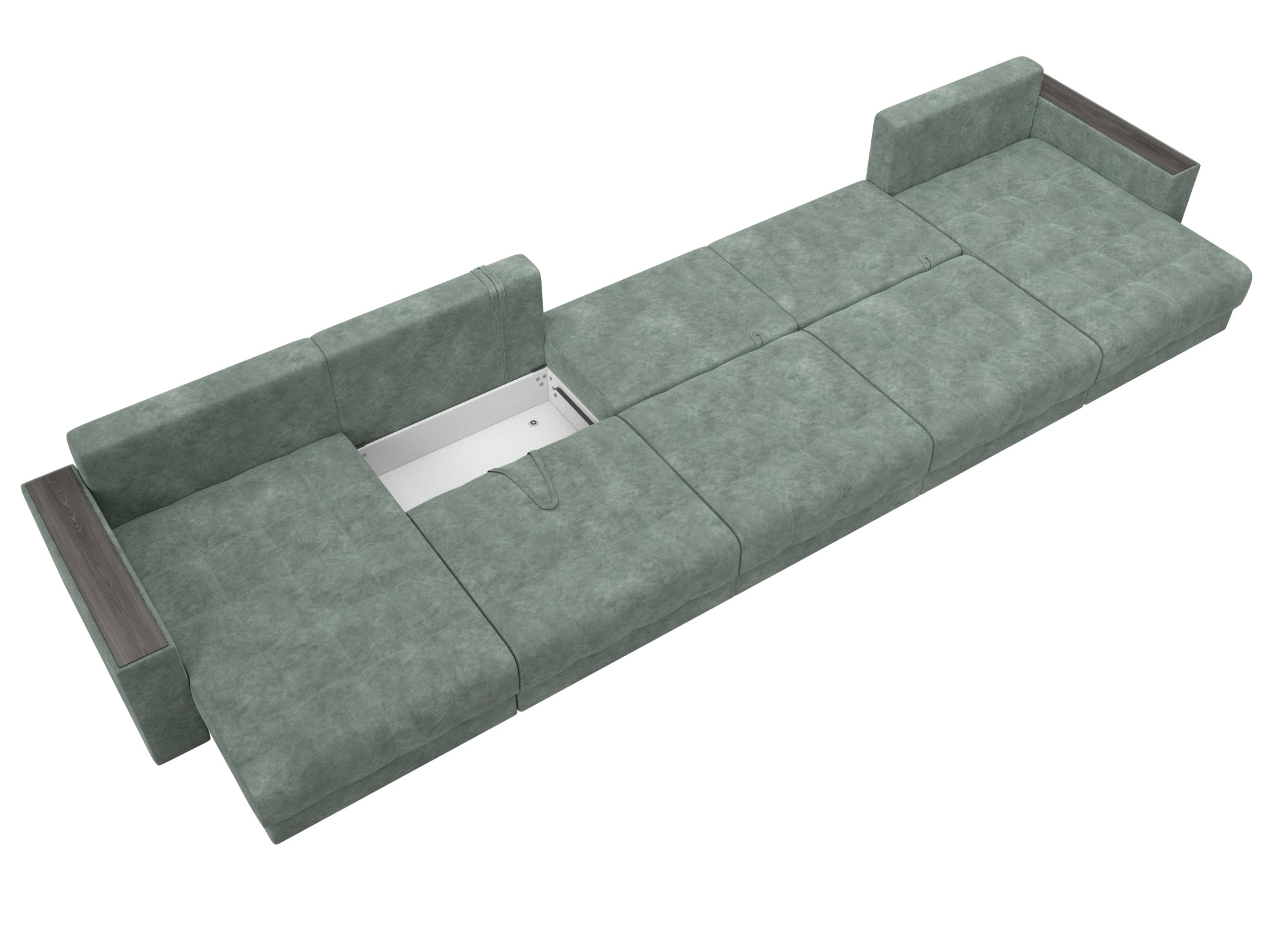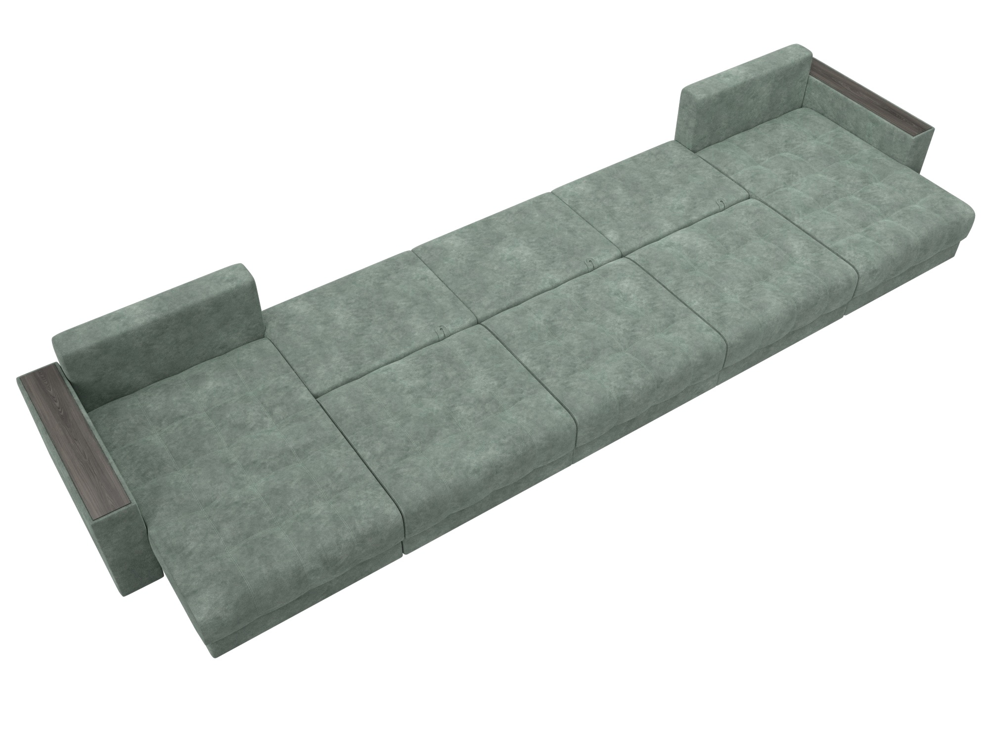 Диван П-образный Лига Диванов Лига-049 НПБ МегаЛонг с декором (велюр Brut 08 зеленый)