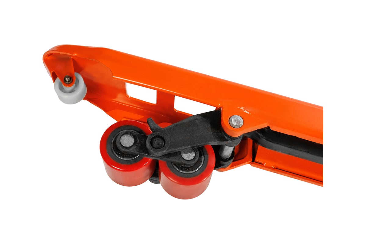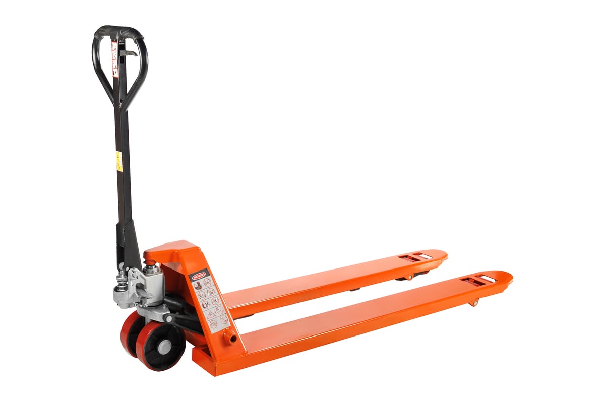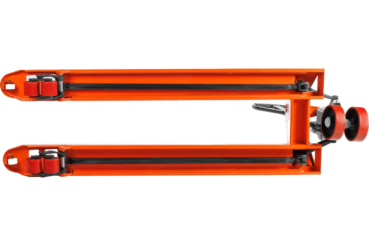 Гидравлическая длинновильная тележка AC 2515, длина вил 1500 мм, грузоподъёмность 2,5 т используется в работе с поддонами и паллетированными грузами нестандартных размеров. Система усиления конструкции и сохранения геометрии вил - продольные ребра жесткости вдоль всей длины вил и угловые ребра жесткости, расположенные за гидроузлом. Колеса и ролики выполнены из полиуретана, не оставляющие следов и подходящие для любых типов поверхностей. Имеет удобную обрезиненную ручку с усиленным основанием и осевым креплением к гидроузлу.