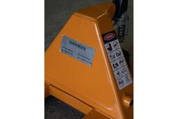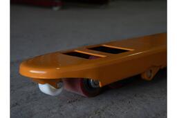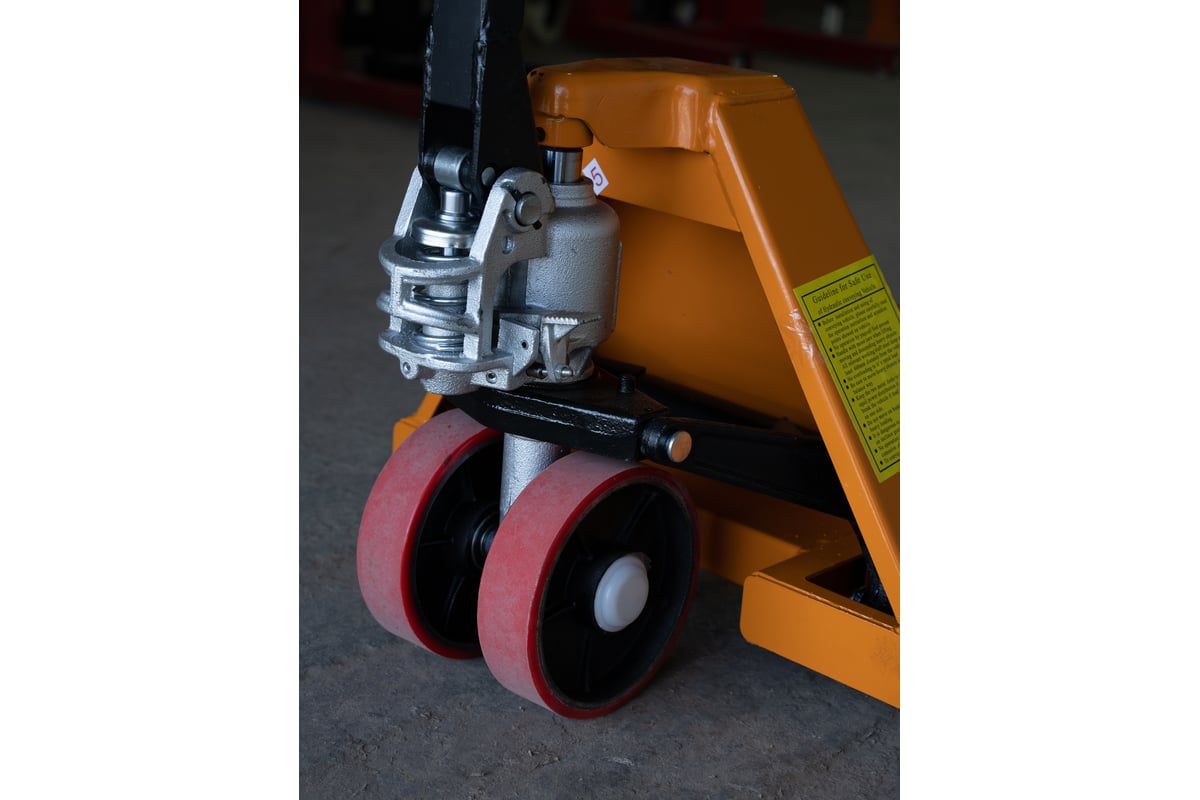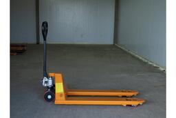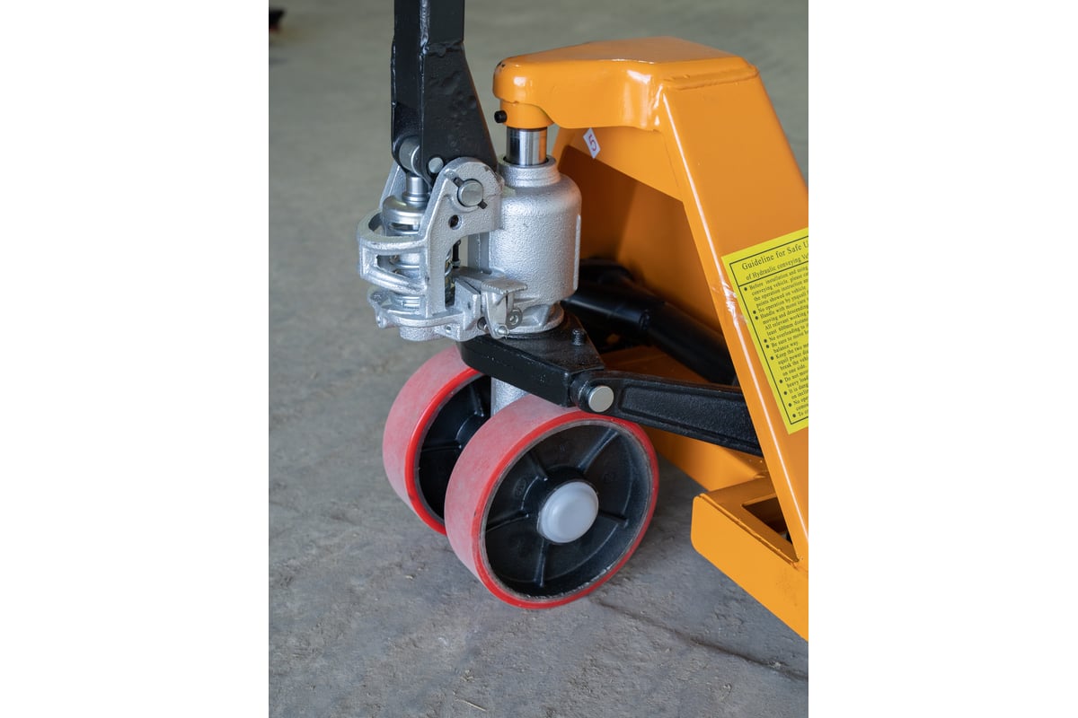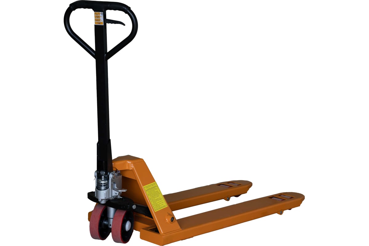 Тележка гидравлическая 2000 кг NARIMAN (полиуретановые колеса) - это складское оборудование для перевозки грузов вручную на паллетах (поддонах). От обычных ручных тележек отличается наличием гидравлического домкрата (гидроузла), который с помощью тяг и рычагов поднимает и опускает вилы тележки с грузом, тем самым облегчая его транспортировку. Является достаточно легким, компактным и маневренным устройством, что позволяет управлять ей одной рукой и использовать в ограниченном пространстве, где затруднительно применять габаритный транспорт для транспортировки грузов, например: в узких проходах между стеллажами на складах и в магазинах; по цехам, где плотно расставлены станки, внутри грузового транспорта и в других подобных условиях.