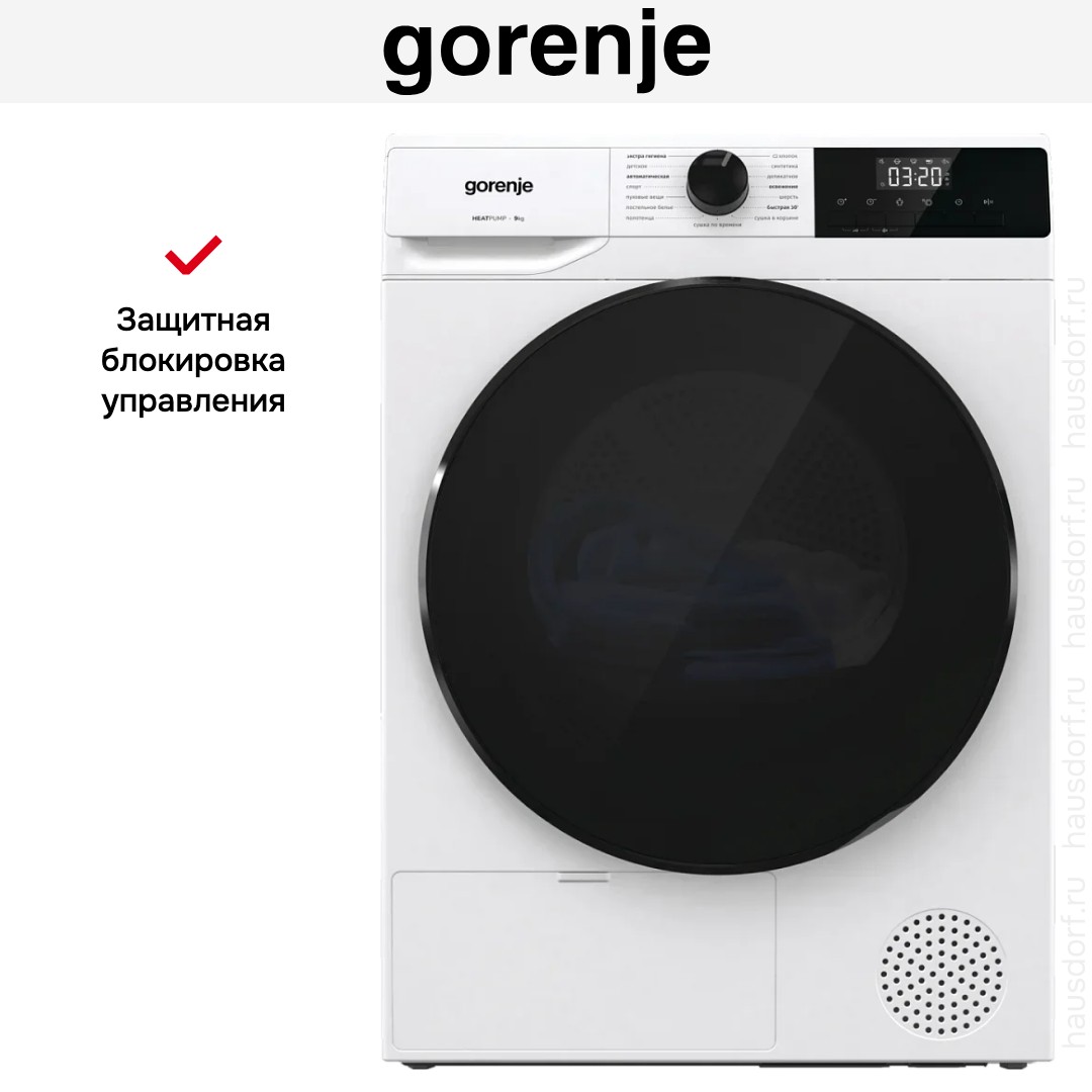 Сушильная машина Gorenje предназначена для домашнего использования, поэтому имеет стандартные габариты и большое разнообразие программ. Так как она устанавливается отдельно, нужно заранее найти достаточно места в помещении.