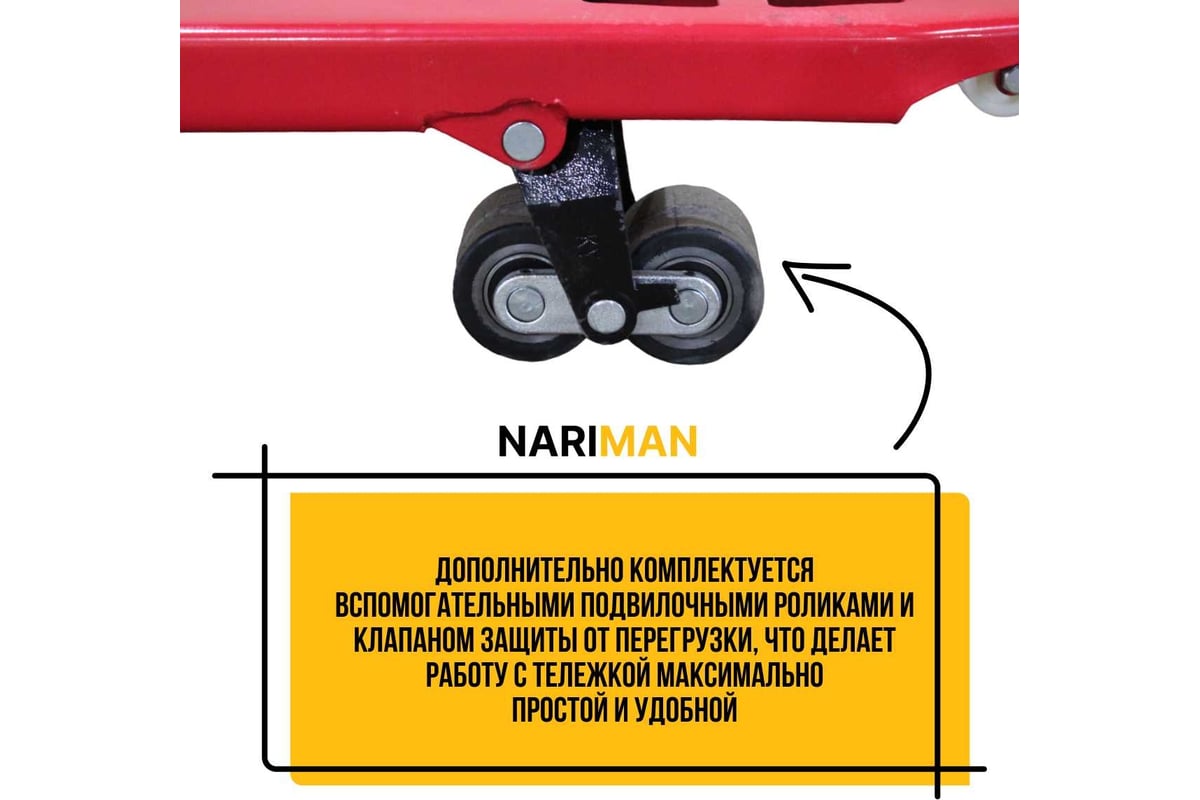 Ручная тележка для поддонов Nariman 3 т, 550x1150 мм, резиновые колеса