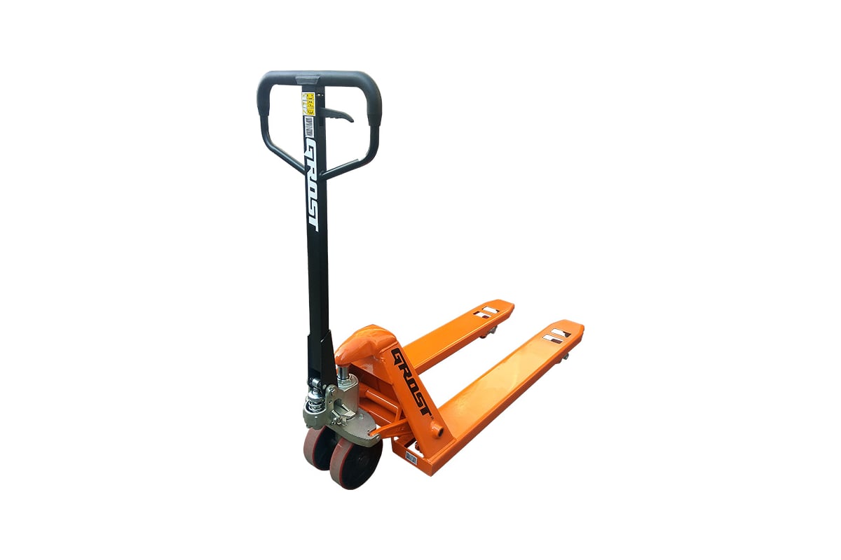 Гидравлическая тележка GROST GT35-115 112904 используется на складах, в крупных торговых залах, на производственных предприятиях для перевозки грузов весом до 3500 кг. Управление положением вил осуществляется рычагом, расположенным на рукоятке. Данная модель подходит для перемещения продукции, упакованной в паллеты, поддоны и коробки, что обеспечивает универсальность ее применения. Рулевые колеса 200х50 мм делают тележку маневренной на рабочей площадке.