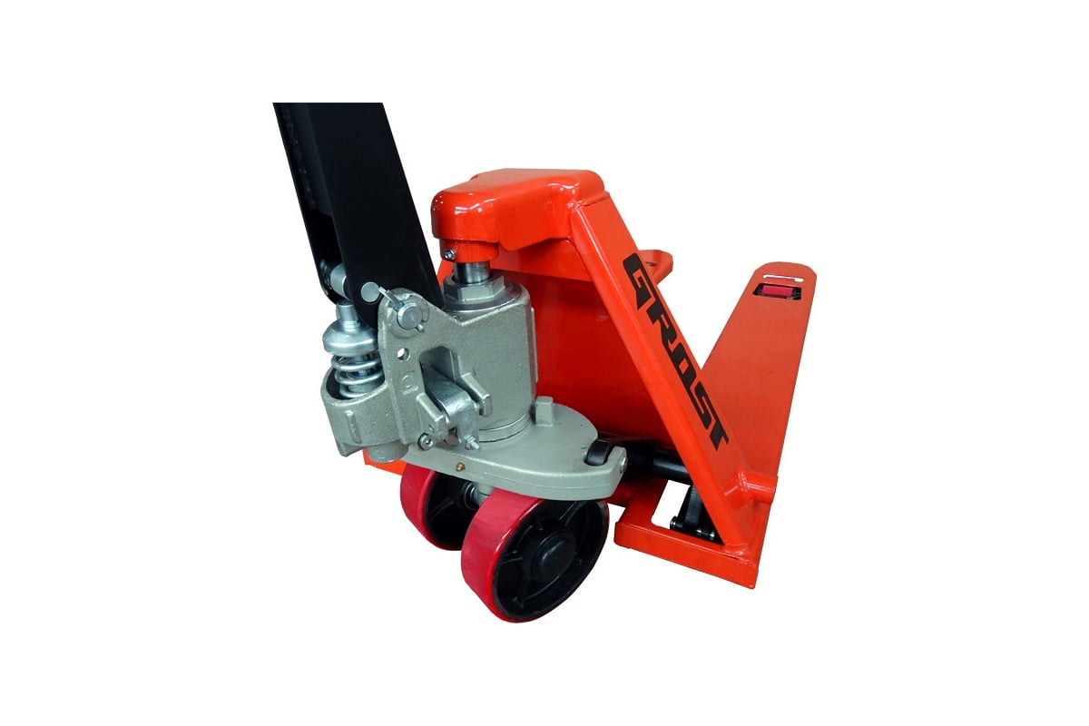 Низкопрофильная гидравлическая тележка Grost GT 20-LP51 109339 исключительно проста в применении, поэтому с её эксплуатацией справится не только опытный, но и начинающий пользователь. Благодаря особенности конструкции - высота подхвата всего 51 мм, данная модель может осуществлять подъем и транспортировку нестандартных поддонов. Передвижение рохли осуществляется за счет усилий оператора, а подъем груза на высоту 141 мм, в свою очередь, выполняется за счет литого гидроузла.