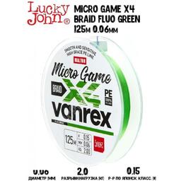 Плетенка Lucky John Vanrex Micro Game х4 BRAID Fluo Green 125м #0,15 0,06мм