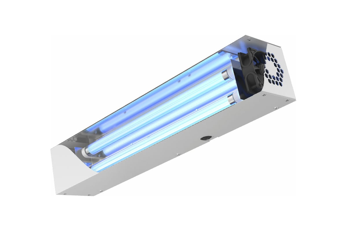Устройство обеззараживает воздушную среду при помощи установленных УФ-ламп.