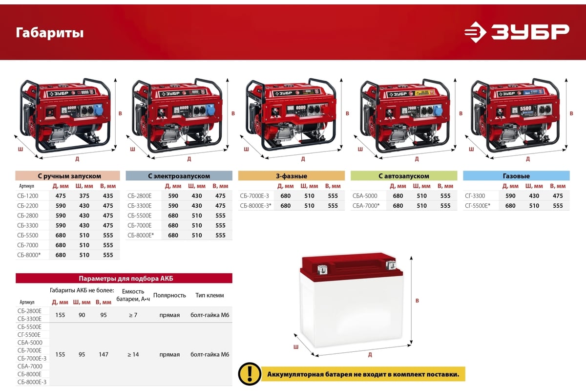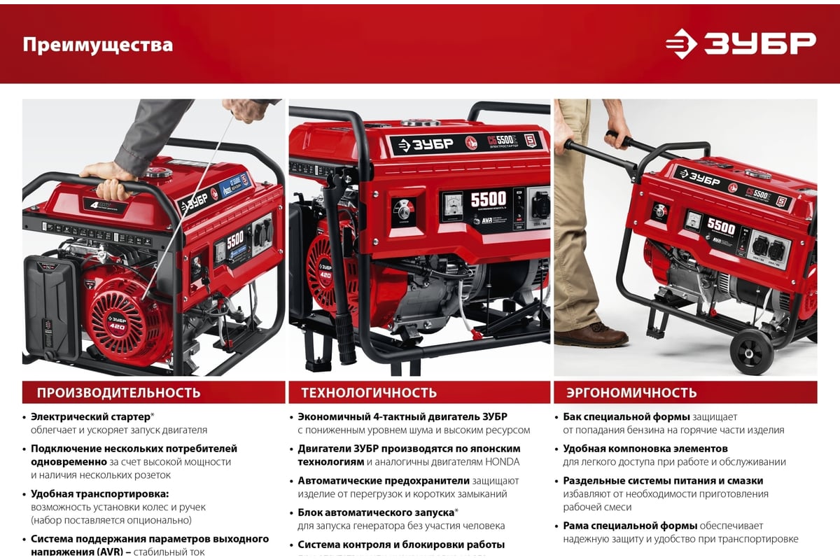 Система контроля и блокировки работы ЗУБР 8000 Вт СБ-8000Е-3 при отсутствии или пониженном уровне масла;