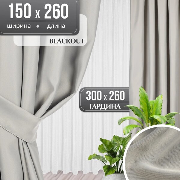 Комплект штор Mio Tesoro Blackout 150x260 + Гардина Вуаль 300х260