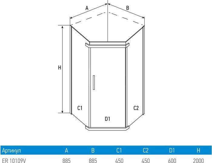 • Форма поддона пятиугольный