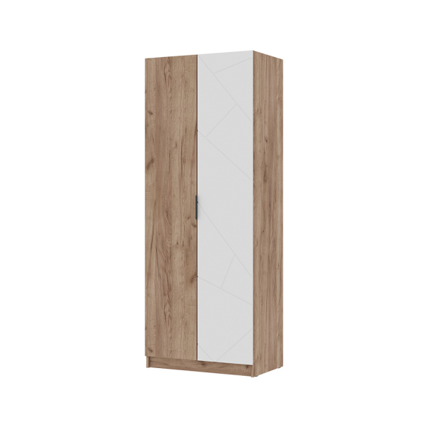 Двустворчатый шкаф Орегон - универсальное хранение для одежды и текстиля, объединяющие стиль и функциональность. МДФ-фасад с геометричной фрезеровкой выполнен в белом или сером декоре и эффектно контрастирует с корпусом под теплое дерево. Внутри предусмотрено отделение со штангой для вешалок и удобными полками, что делает шкаф идеальным выбором как для спальни, так и для прихожей или гардеробной.
