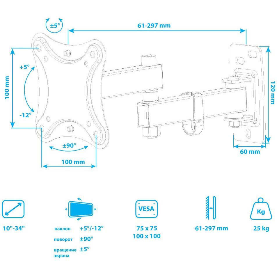Кронштейн для телевизора Kromax Corbel-3 черный 10"-32" макс.25кг настенный поворот и наклон