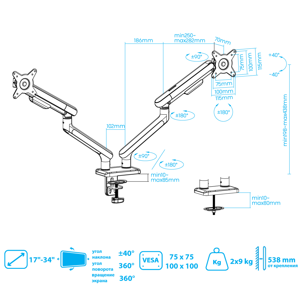 Кронштейн для мониторов Tuarex ALTA-22 grey