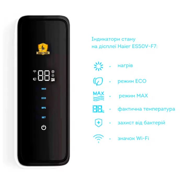 Захистмагнієвий анод , захист від ураження електричним струмом 1 клас , пристрій захисного відключення (ПЗВ) , захист від увімкення без води , захист від перегріву