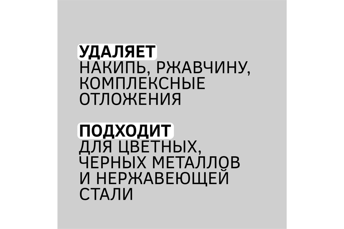 Эффективная очистка Удаляются комплексные отложения, ржавчина и накипь на 100%