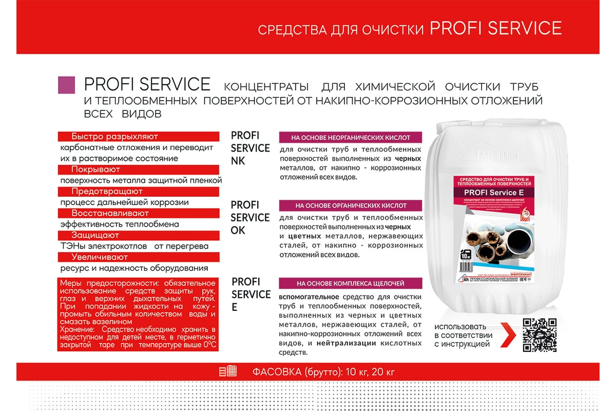 • Расход 1/5 (10 литров средства «PROFI Service OK» на 50 литров воды)