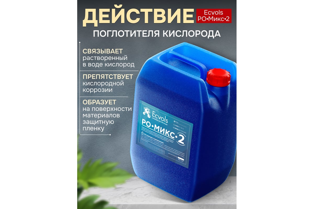 Ингибитор коррозии Ecvols РО-Микс-2 удаление и защита от ржавчины в системах теплоснабжения и охлаждения, антискалант, 20 л, 22 кг 00.00011068 – профессиональный химический реагент антискалант для предотвращения кислородной коррозии в закрытых системах теплоснабжения и охлаждения .
