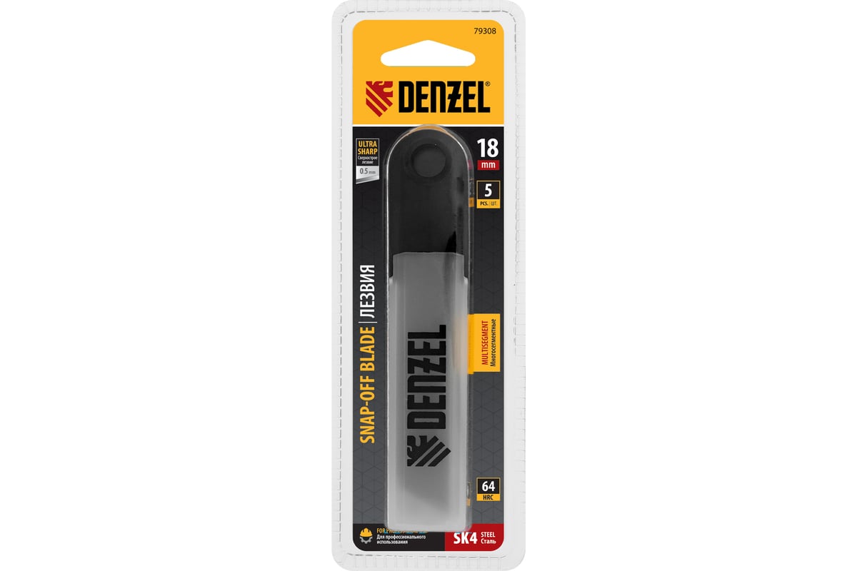 Лезвия 18 мм, сталь SK4, 0.5 мм, супер острые, многосегментные, 5 шт Denzel 79308