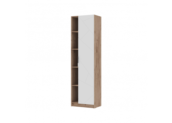 Шкаф-пенал Орегон компактное и практичное решение для хранения с оригинальной геометричной фрезеровкой на МДФ-фасаде. Сочетание белого и серого декора с теплым древесным оттенком корпуса придает мебели современный и выразительный дизайн. Вместительные полки внутри и снаружи позволяют удобно разместить книги, аксессуары и элементы декора, создавая порядок и уют в помещении.