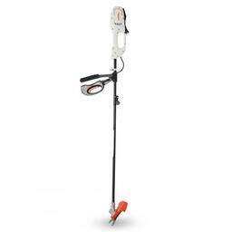 Очень высокая мощность двигателя (1200 В) обеспечивает лёгкость кошения, а режущая гарнитура способна легко справляться со значительными нагрузками без резкого снижения оборотов, допуская использование струны диаметром до 2,4 мм и металлического ножа. При необходимости работы на расстоянии от розетки с использованием сетевого удлинителя длиной свыше 10 метров рекомендуется использовать кабель с сечением 2,5 квадратных мм, чтобы избежать потери мощности на сопротивление. Для обслуживания триммера владельцем требуется минимум инструментов.