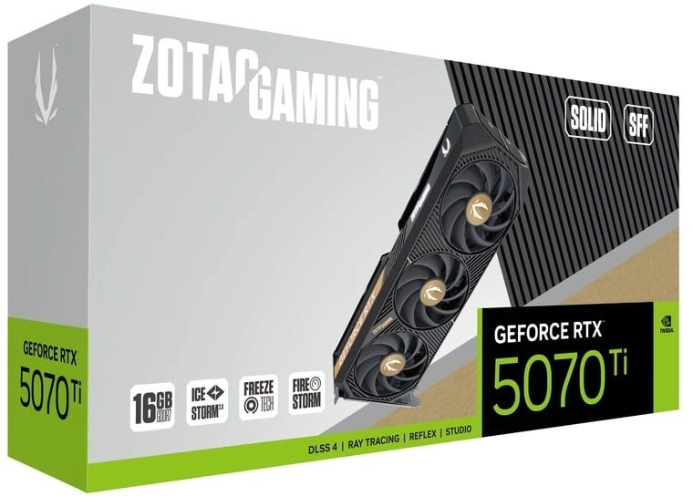 Видеокарта Zotac PCI-E 5.0 RTX 5070TI SOLID SFF NVIDIA GeForce RTX 5070TI 16Gb 256bit GDDR7 2452/28000 HDMIx1 DPx3 HDCP Ret
