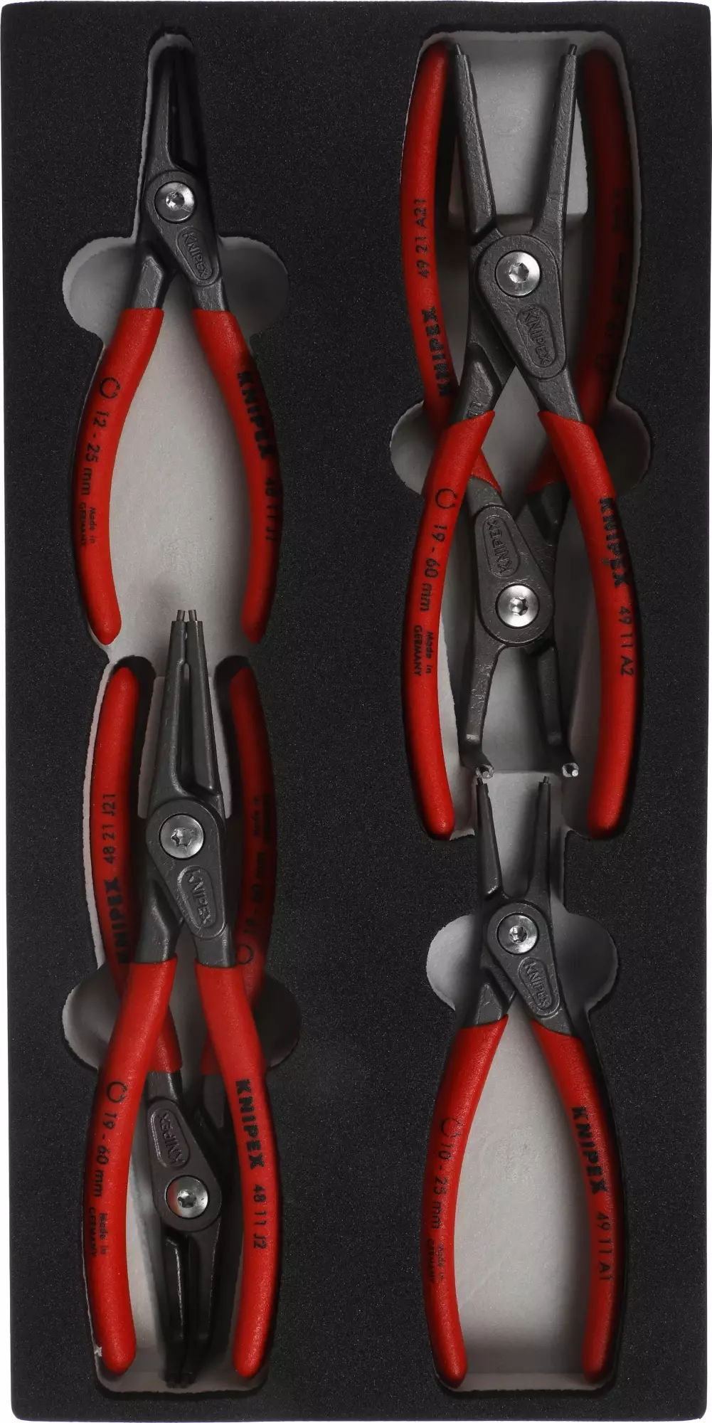 ОписаниеSRZ Набор щипцов прецизионных для внутренних и внешних стопорных колец, ложемент из поропласта, 6 предметов, щипцы KN-4811J1, KN-4811J2, KN-4821J21, KN-4911A1, KN-4911A2, KN-4921A21.