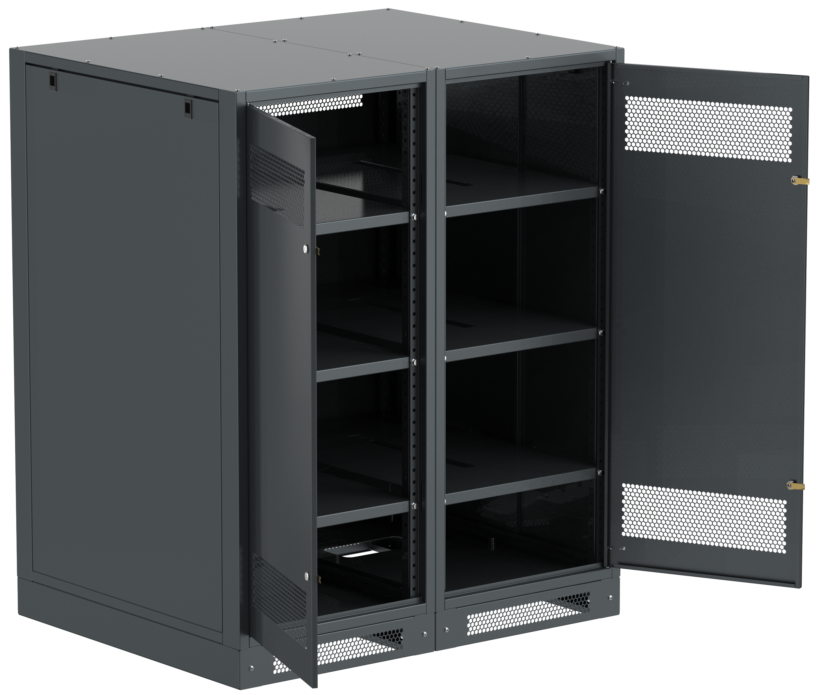 Шкафы LINEA B повышенной прочности со сварным каркасом и усиленными полками позволяют размещать АБ до 500 кг. на полке.