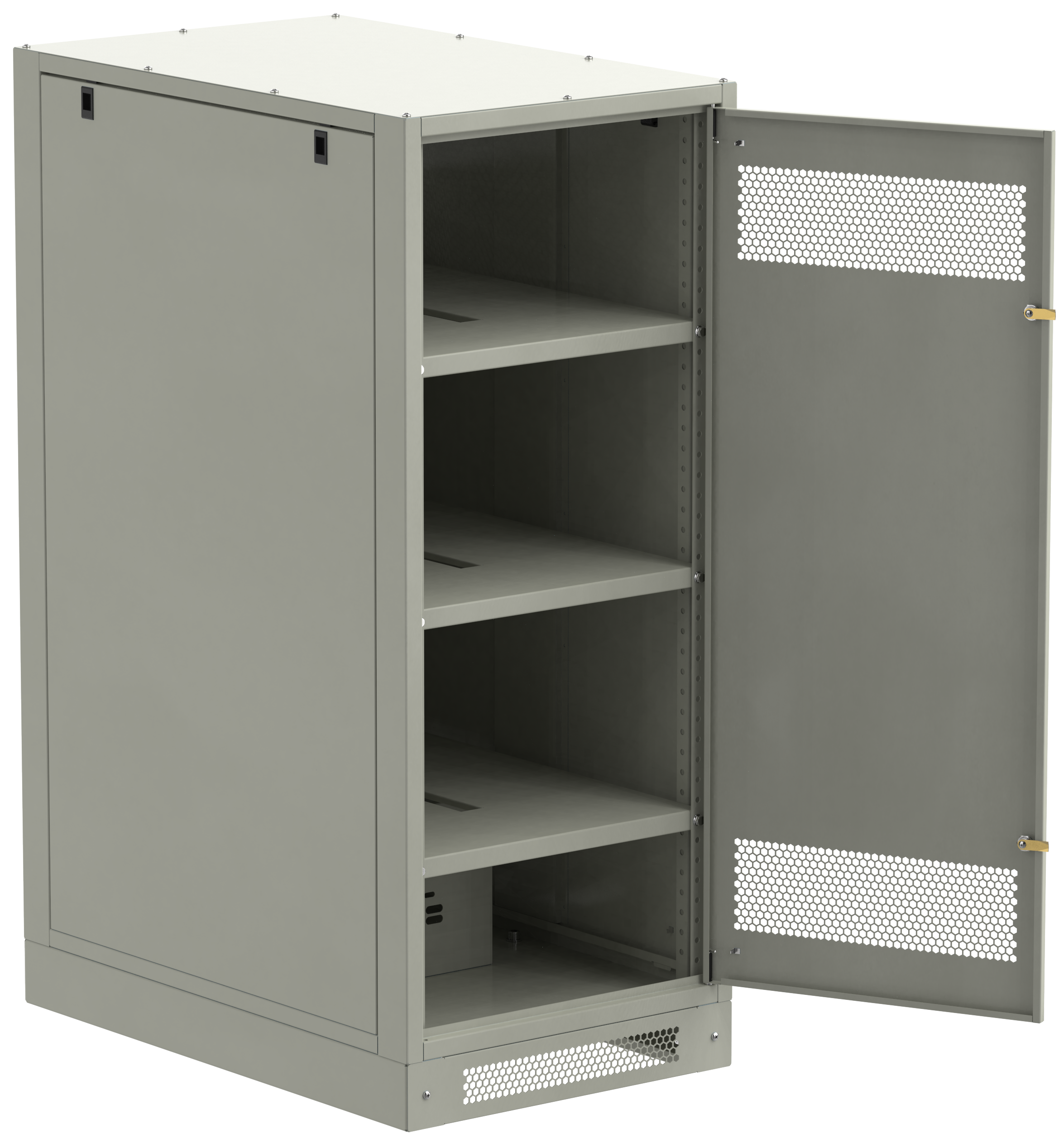 Шкафы LINEA B повышенной прочности со сварным каркасом и усиленными полками позволяют размещать АБ до 500 кг. на полке.