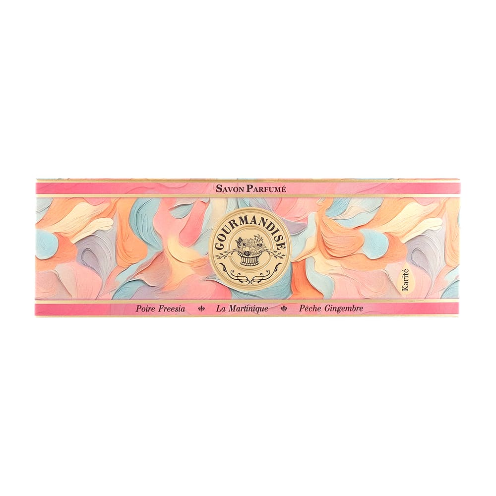 Нежное мыло Gourmandise создается по старинным марсельским рецептам. Содержит 98% ингредиентов натурального происхождения, которые благодаря особенной технологии получения сохраняют целебные свойства растений, мягко очищают и питают кожу, окутывая её природными ароматами. <br>