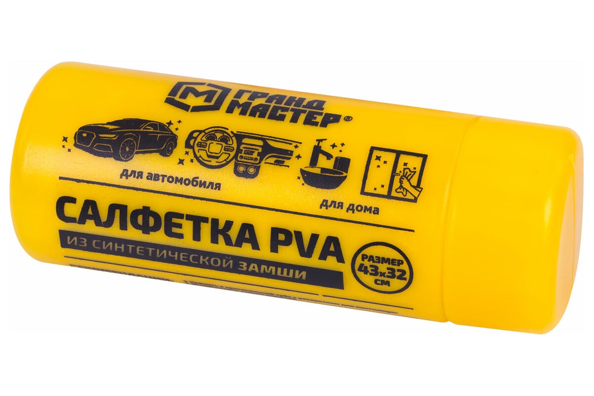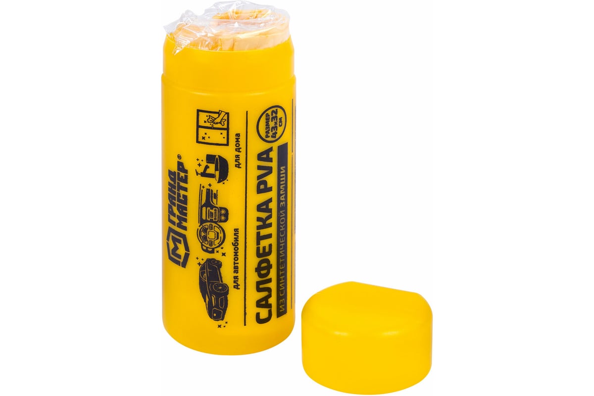 Салфетка синтетическая ГРАНДМАСТЕР PVA замша 43x32см в тубе желтая для авто, дома и офиса , 609975