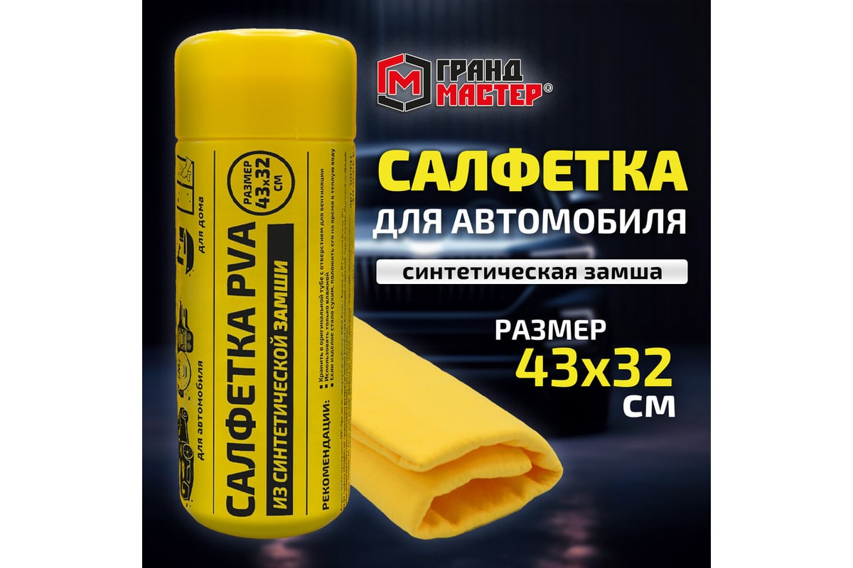 Инновационная салфетка из искусственной замши ГРАНДМАСТЕР – универсальное средство для ухода за автомобилем! Обладает сверхсильной впитываемостью, легко удаляет загрязнения без моющих средств и разводов, идеально подходит для сушки.