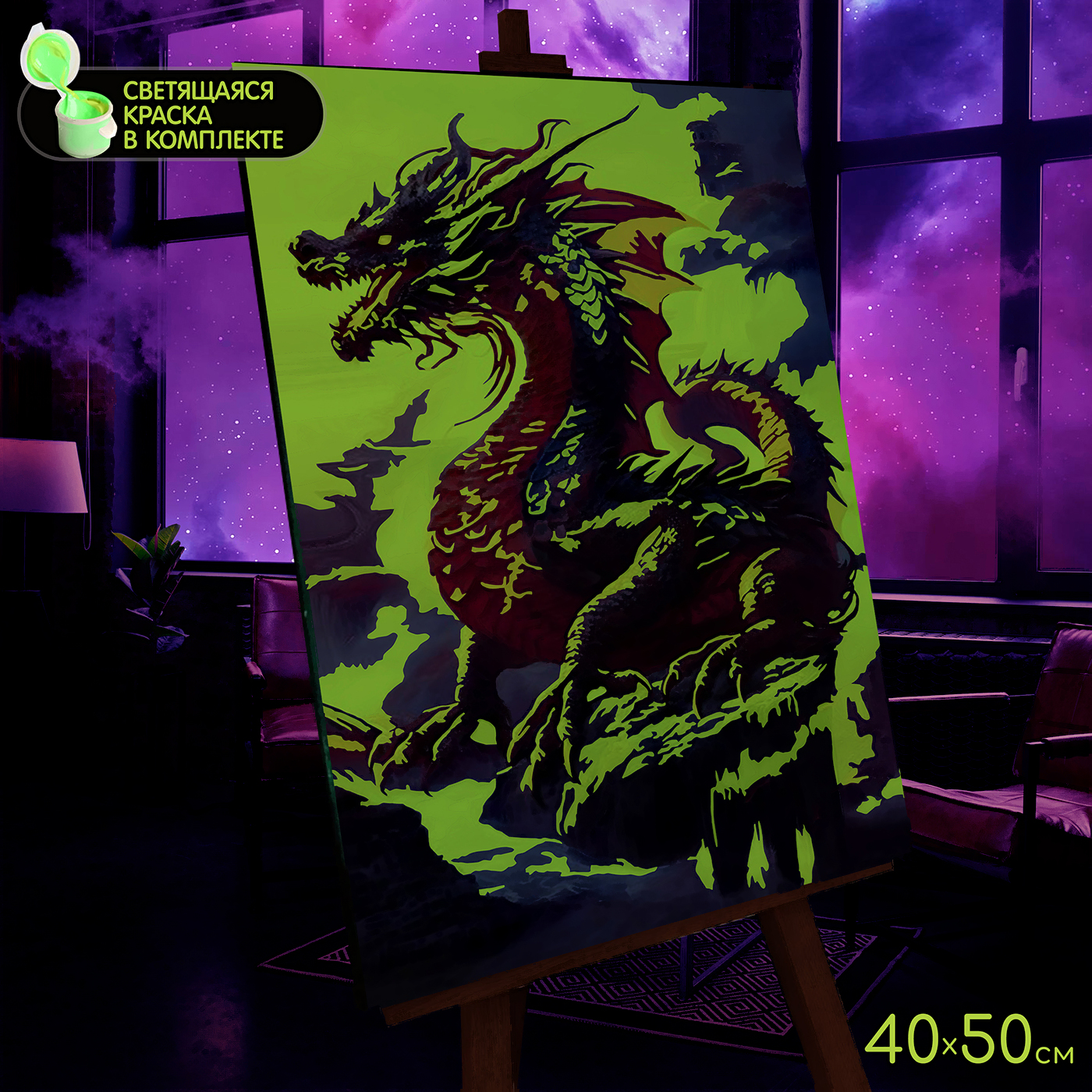 Картина по номерам Молли Красный дракон со светящейся краской 40x50 / FHR0575