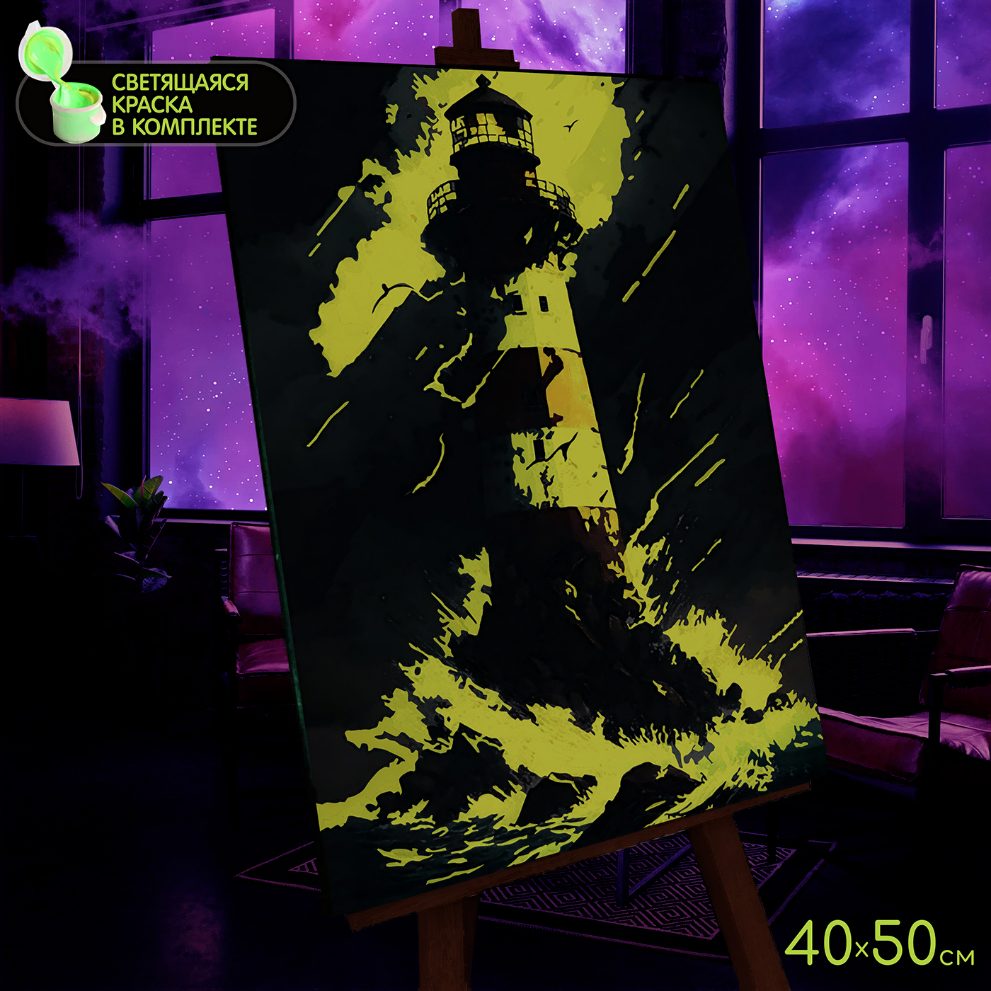Картина по номерам Молли Морской маяк со светящейся краской 40х50 / FHR0577
