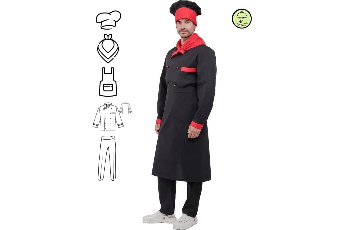 Костюм URSUS повара мужской "Дуглас" черный с красным ПОВ572-124/56-58, 182-188