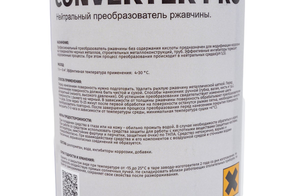 Нейтральный преобразователь ржавчины Telakka CONVERTER PRO 1 л 4631160697555 применяется в различных промышленных сферах, авторемонтных работах, быту.