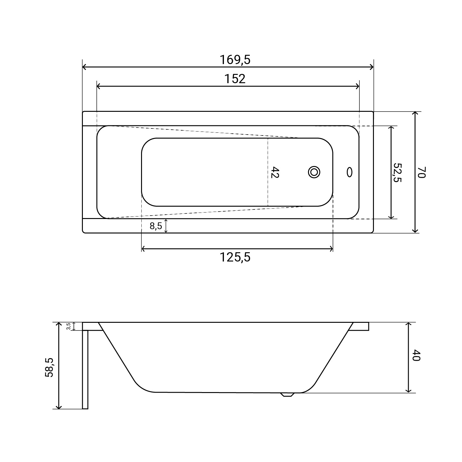 Ванна акриловая Lauter Estelle 170 / 21206070 (с каркасом, черным подголовником, черным лиц.экраном)