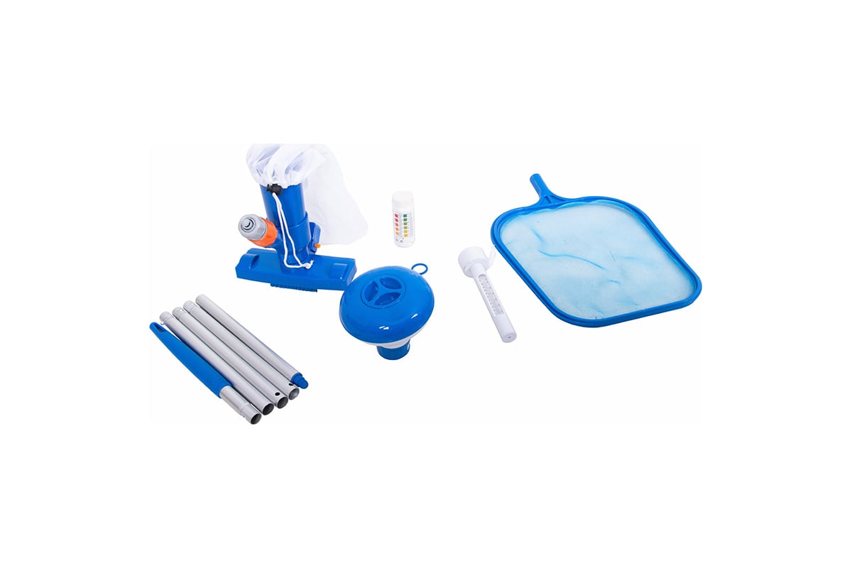 - Состав набора сачок, ручка, насадка со щеткой, дозатор для дезсредства, плавающий термометр, тест-полоски