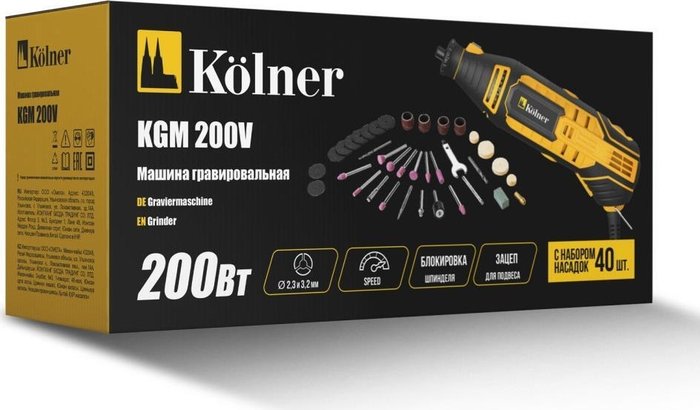 Комплектация- машина гравировальная, - набор насадок (40 шт.), - руководство по эксплуатации.