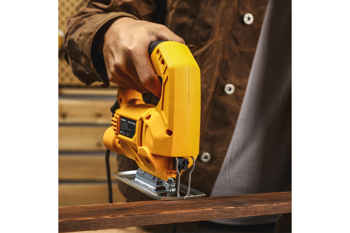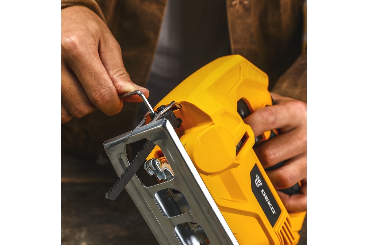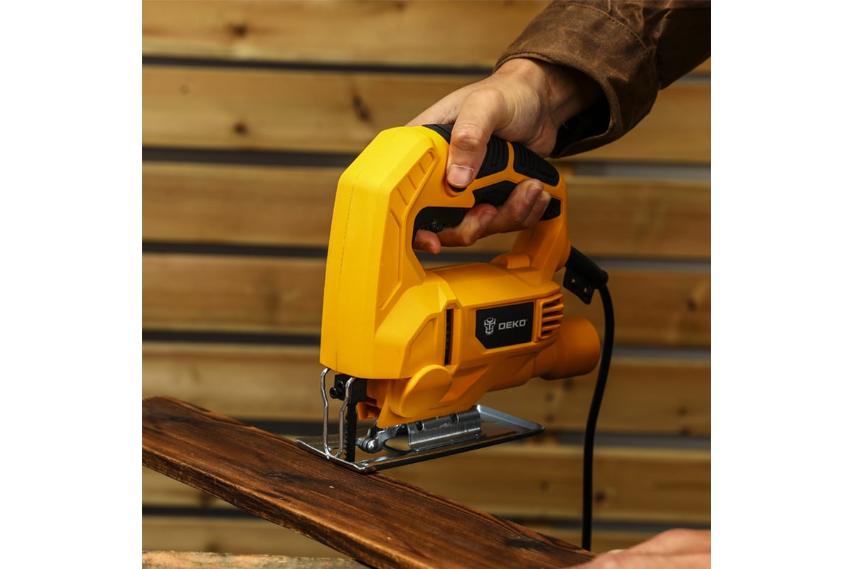 Электролобзик DEKO DKJS650 используется для распиливания дерева, металла, пластика, резины при отделочных или ремонтных работах.