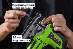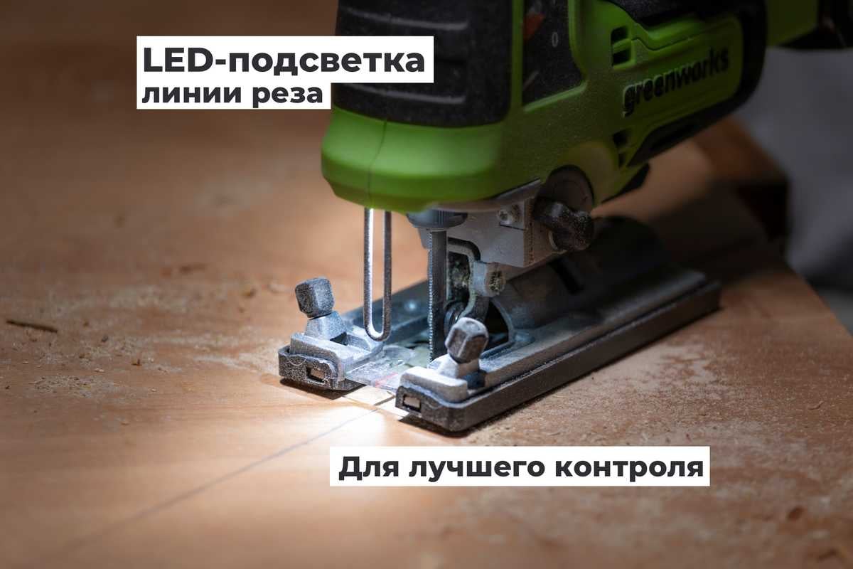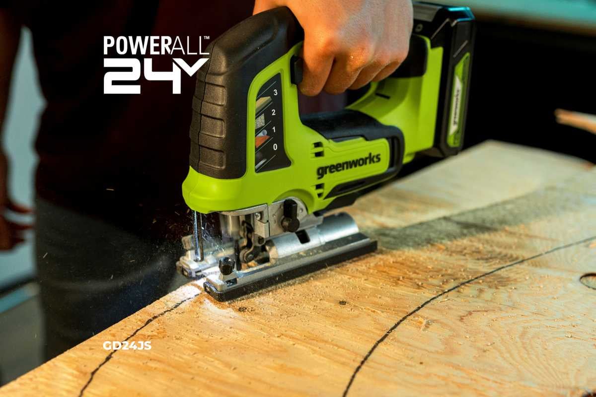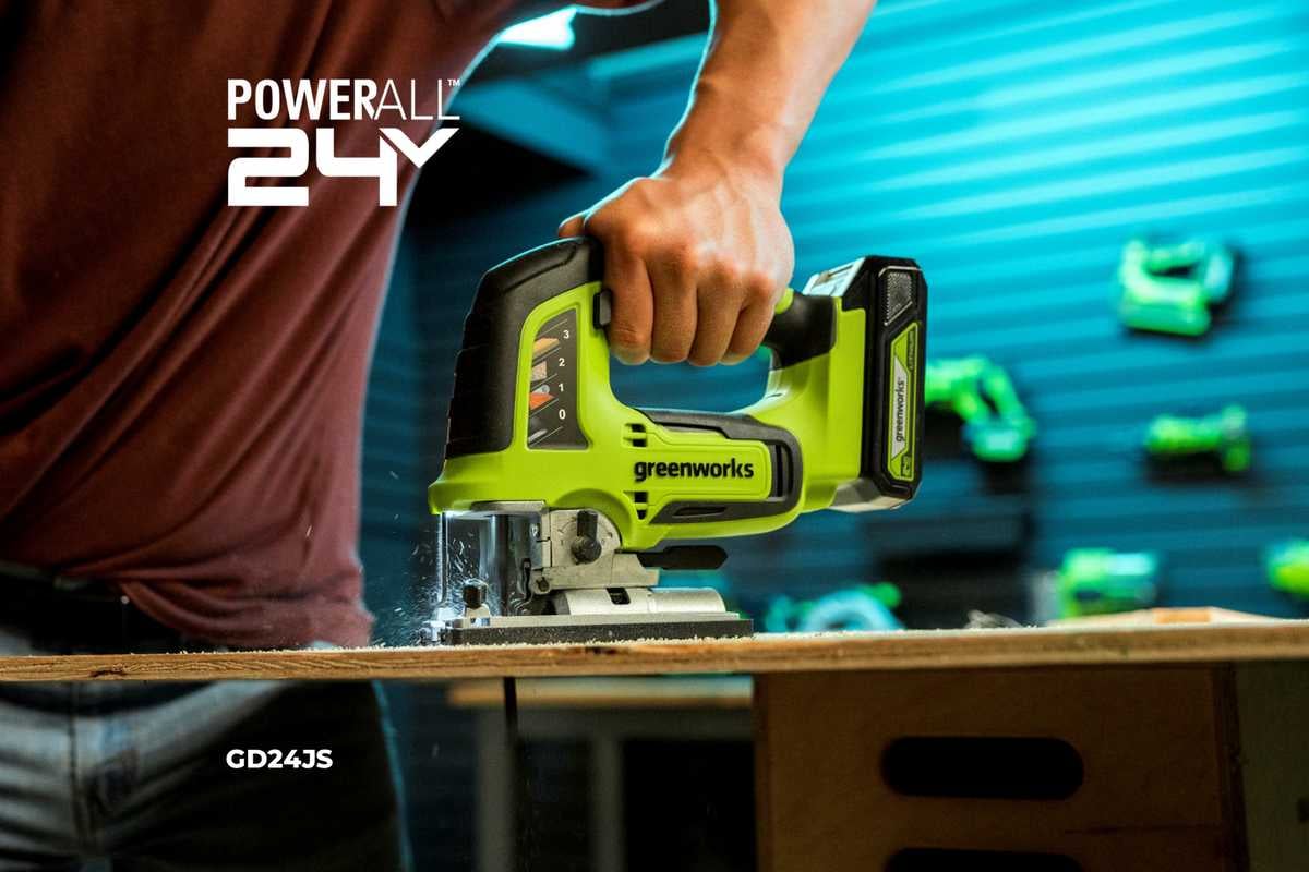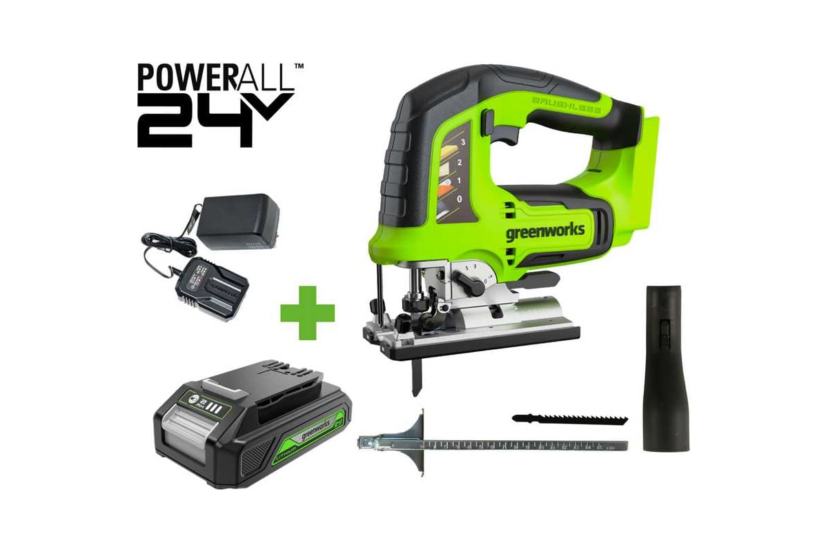 Лобзик GreenWorks GD24JS, 24V, б/щет, 100мм, 800-3000/мин, 4-ст.маятник, алюмниевая подошва, LED, 1x2Ач, ЗУ, коробка 3601407VUA