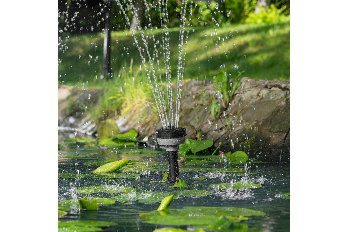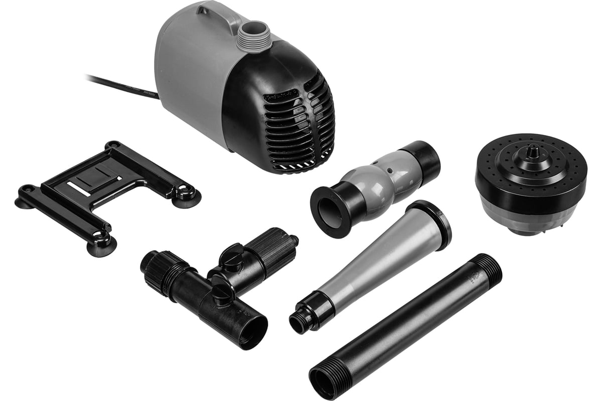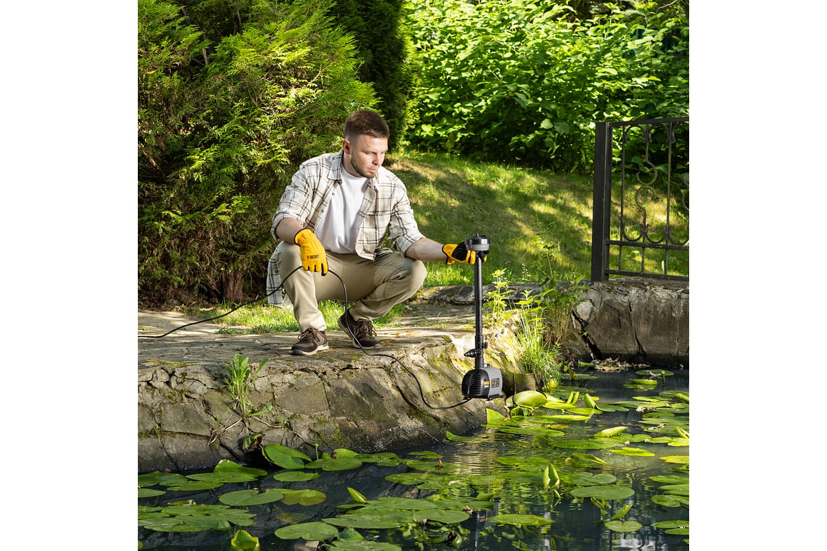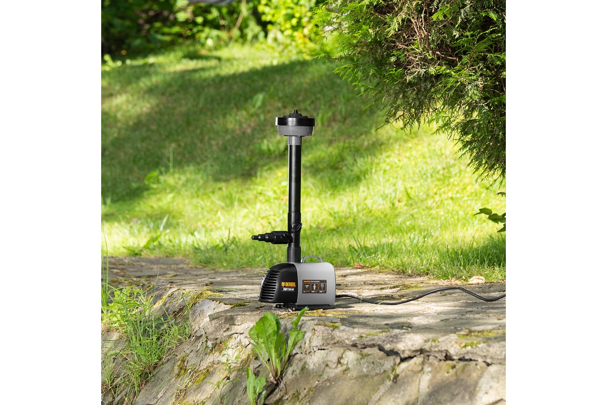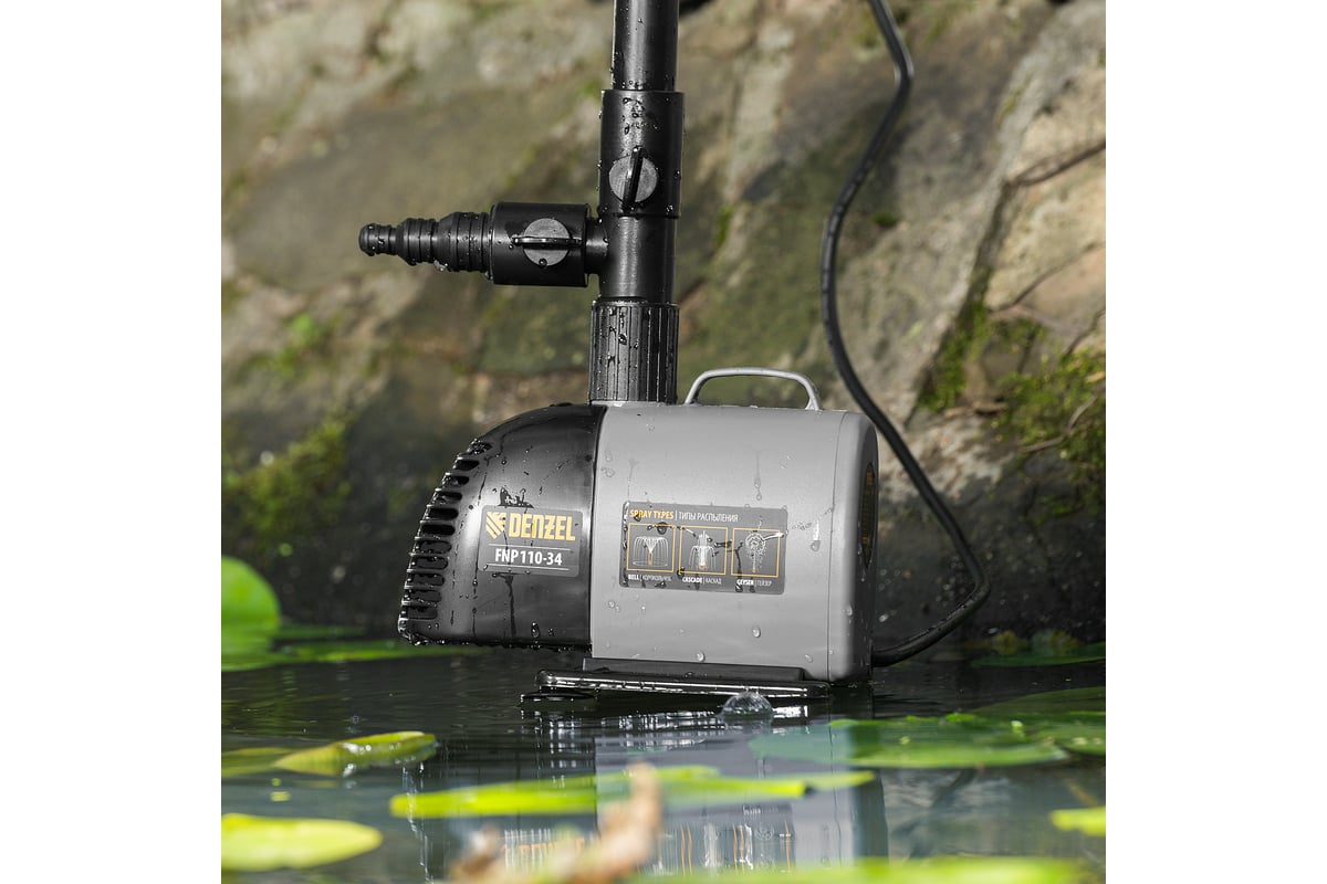 Фонтанный насос Denzel FNP110-34 99032 мощностью 112 Вт, с насадками колокольчик/каскад/гейзер, перекачивает 3400 л воды в час и обеспечивает максимальную высоту подъема 3,4 м. Позволяет создать декоративный фонтан, украсив водоем и оживив ландшафт дачного участка. Установив одну из входящих в комплект насадок, можно получить наиболее подходящий тип струи: в виде колокольчика, каскада или гейзера. Также в конструкции насоса предусмотрен специальный патрубок для создания водопада.